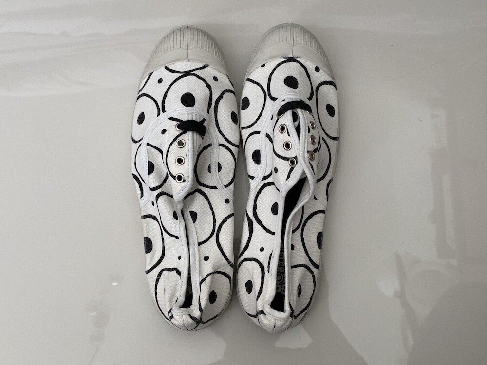 편안한 벤시몽 운동화에 10 꼬르소 꼬모의 색깔을 입힌 제품으로, 포인트로 여기저기 코디해주시기 좋아요. 제가 신은 모델은 "1. 눈_검정"입니다.