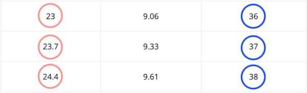 왼쪽 분홍 동그라미가 실제 발 길이, 오른쪽 파란 동그라미가 선택하시는 사이즈입니다.