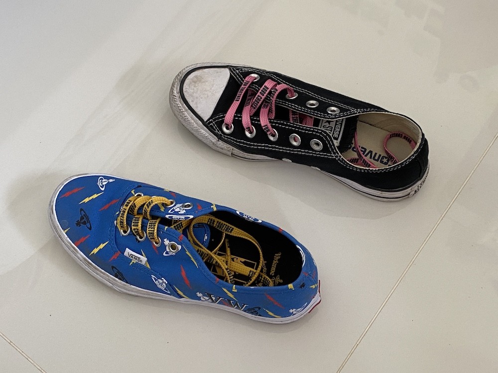 보보 쇼즈(BOBO CHOSES)와 봉막쉐(Le Bon Marché) 백화점 콜라보 신발끈 노랑입니다.