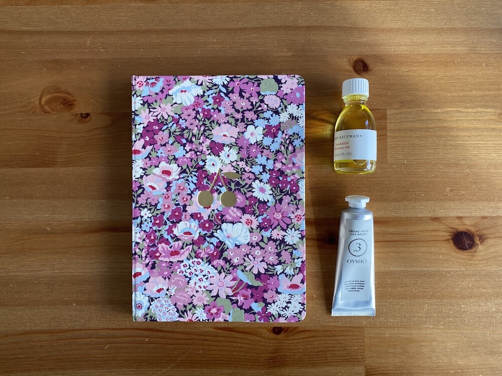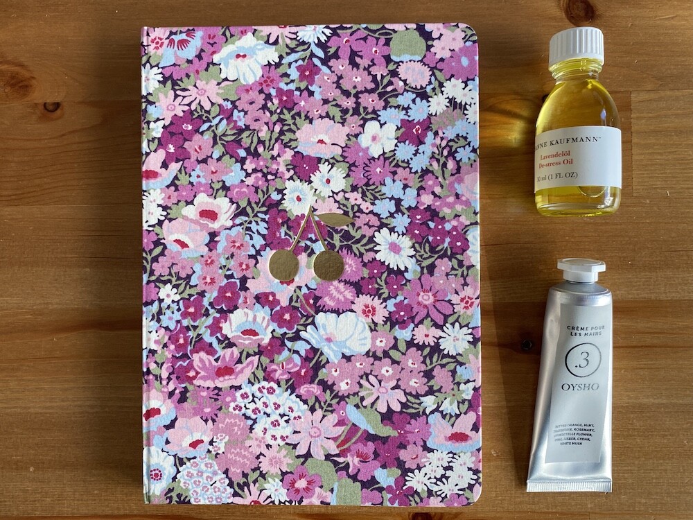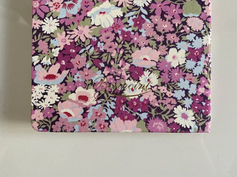 봉쁘앙의 리버티 원단으로 겉을 두른 예쁜 노트예요. 앞쪽 체리 모양과 뒷쪽 Bonpoint이라는 글씨는 금박으로 음각되어 있어 더욱 예쁩니다.