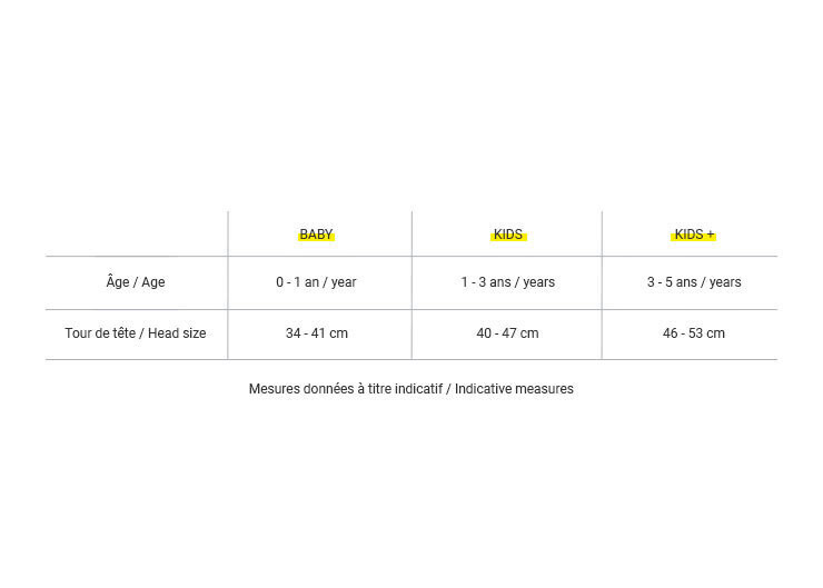 사이즈가 4가지이니 아이 머리 둘레를 잘 재어보시고 선택하세요. 기재해 놓은 연령은 유럽 기준인데, 같은 나이라면 한국 아이들 머리 둘레가 조금 더 크다고 하네요.