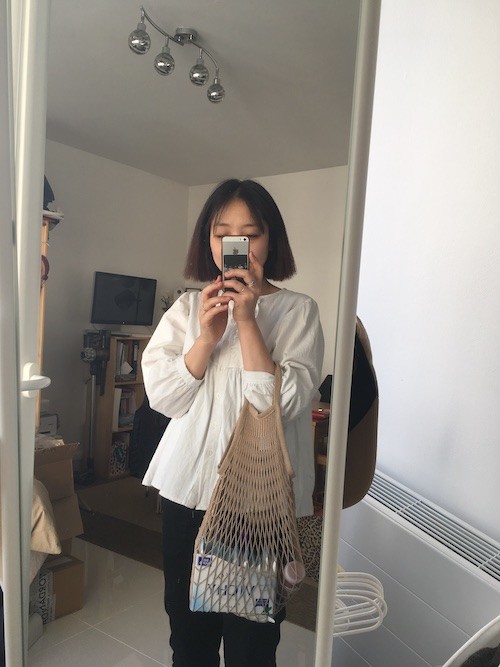 손잡이가 달린 미듐 사이즈의 네트백으로, 저는 개인적으로 장바구니로 이용하기에 이 사이즈가 가장 편하더라고요.