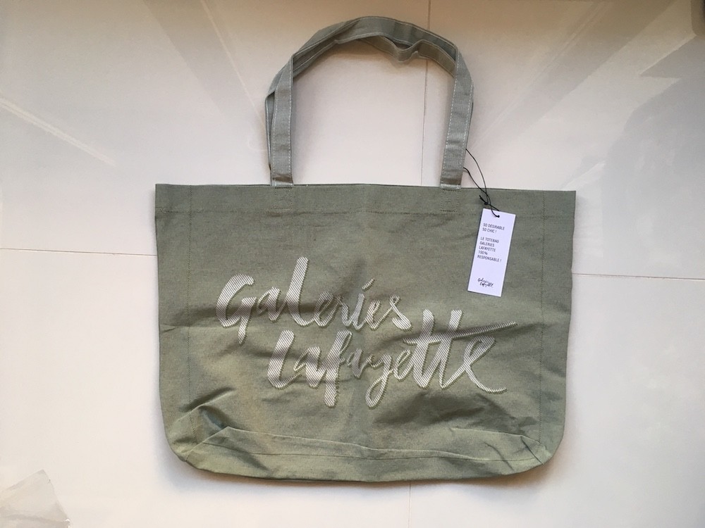 갤러리 라파예트(Galeries Lafayette)의 에코백 중 카키색입니다.