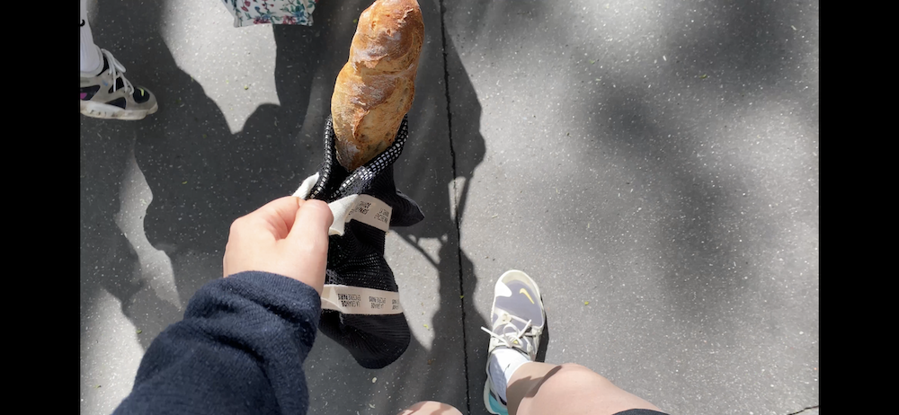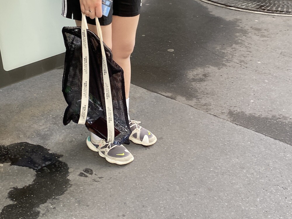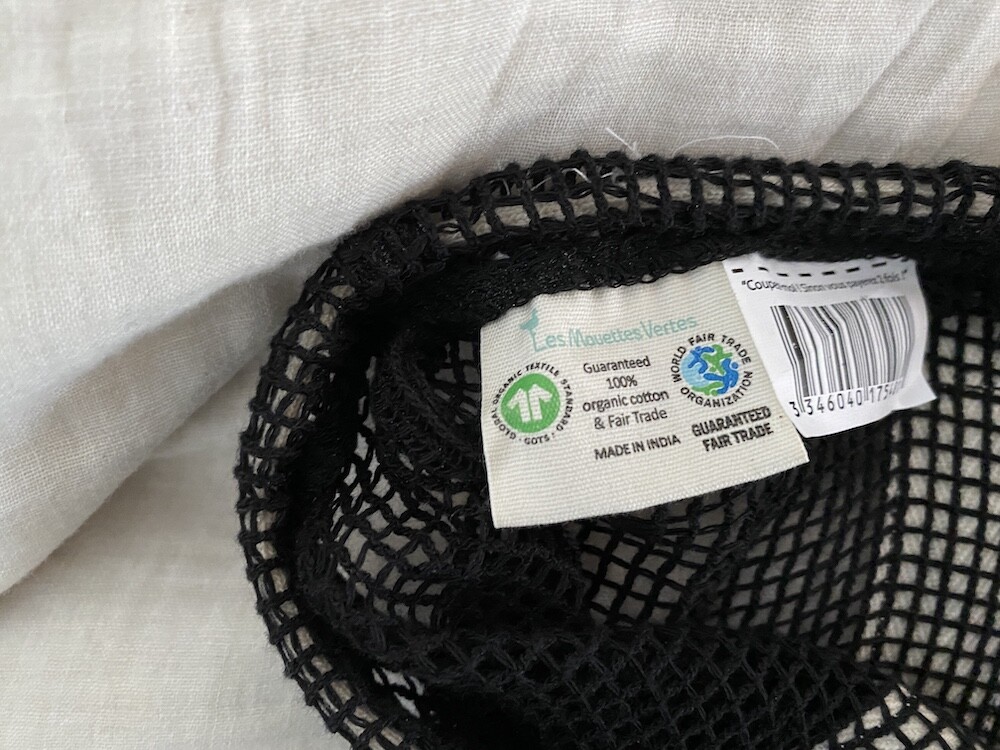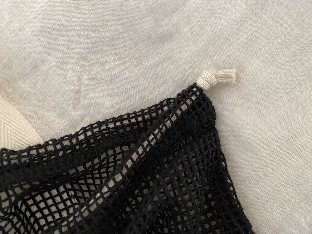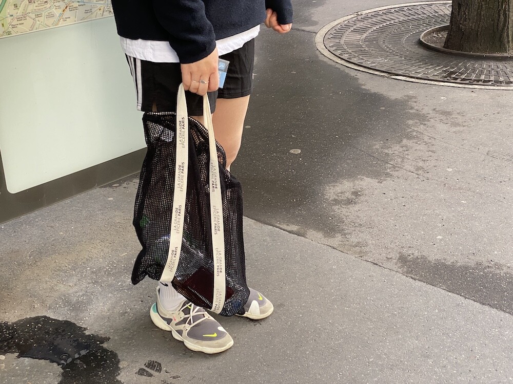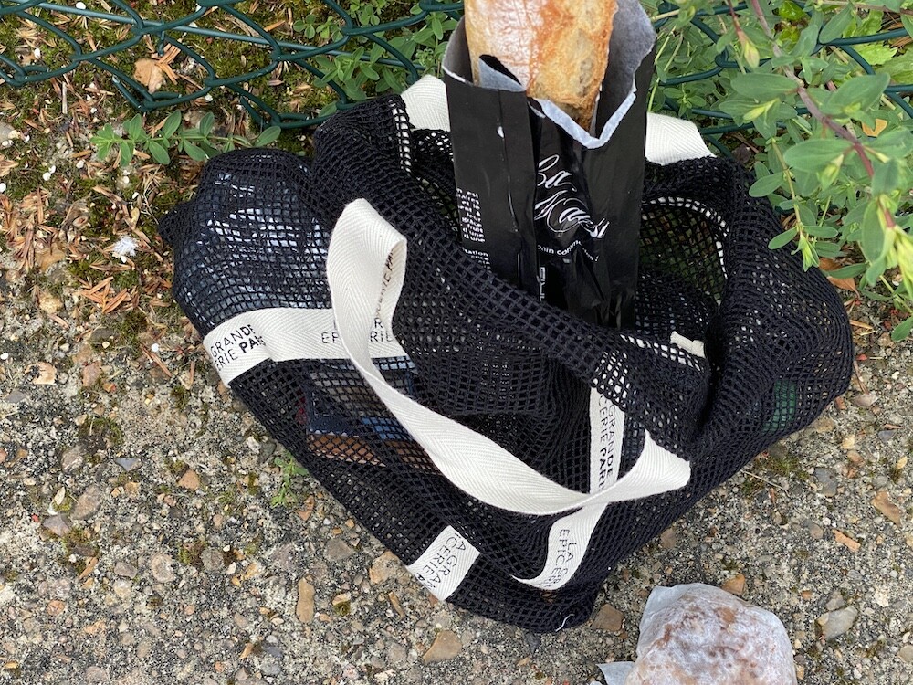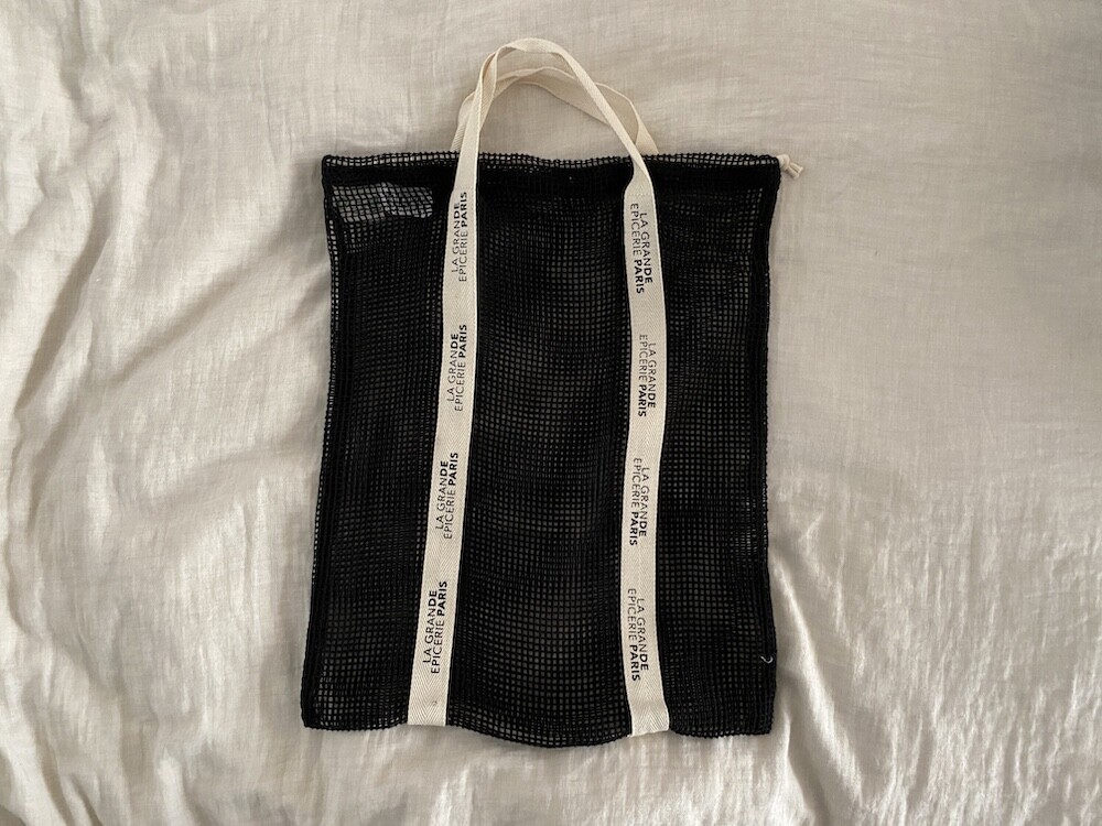 검정색의 그물 가방에 크림색의 끈이 달린 네트백으로, 끈에는 봉막쉐 식품관 이름인 LA GRANDE ÉPICERIE DE PARIS가 새겨져 있어서 예뻐요. 공정 무역 유기농 면을 사용한 네트백이라 좋고 입구 부분을 조일 수 있는 것도 좋네요. 야채나 과일을 담는 용도로 만들어진 가방이라 그물이 쫙쫙 늘어나는 게 아니라 모양이 딱 잡혀서 잘 늘어나지 않는데 저는 이 점이 참 마음에 들더라고요. 생수 한 병을 넣어 들고 다녔는데 늘어짐이 없어요.