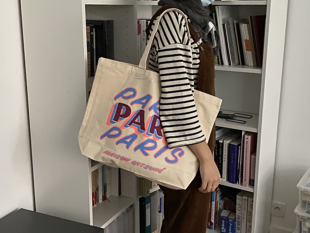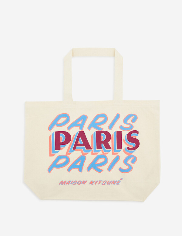 로스앤젤레스에 기반을 둔 아티스트 Ben Klevay의 장난기 넘치는 빈티지 타이포그래피가 프린트된 가방이에요. 프린트의 색깔 자체도 너무 예쁘고, PARIS라고 씌여진 글씨체도 다양해서 재미있어요. 키츠네 제품 답게 면도 탄탄하고 박음질도 튼튼해서 무거운 물건들 넣어 가지고 다니실 때에도 좋을 거예요.