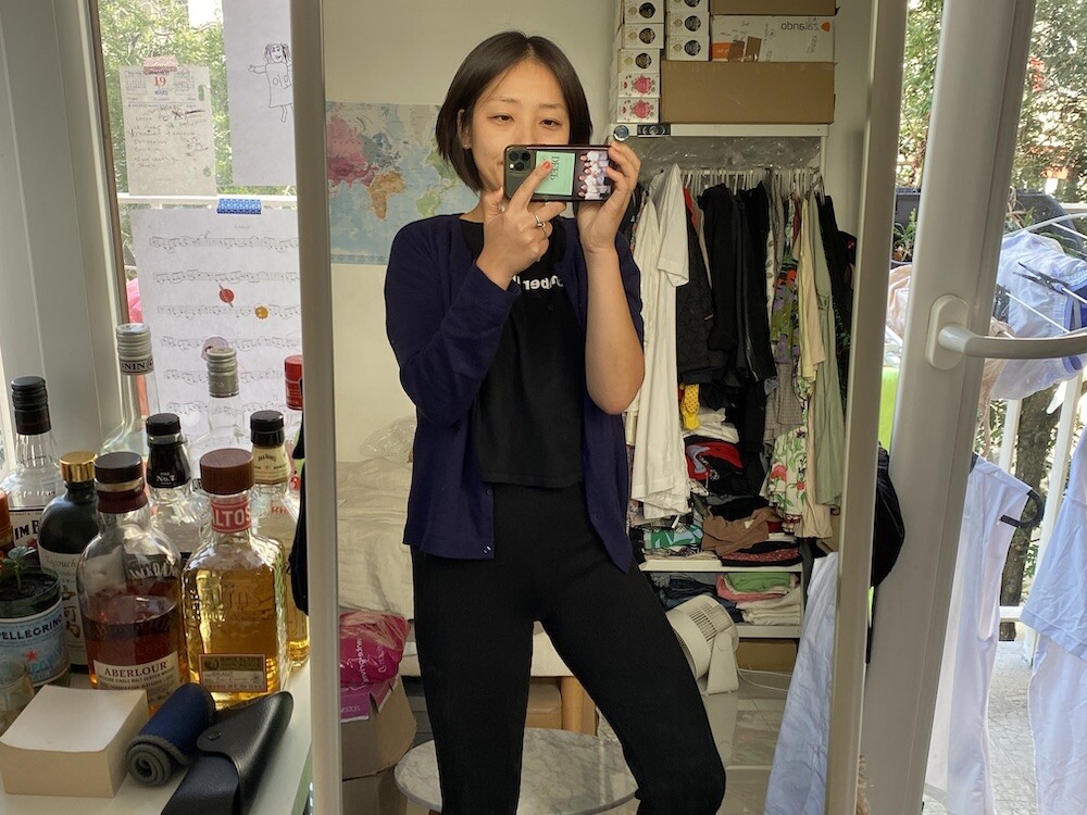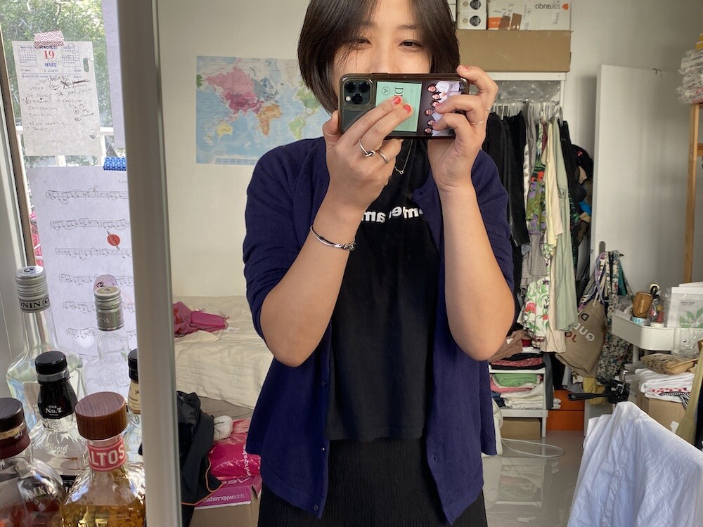 크롭 기장이지만 아주 짧지는 않아서 부담스럽지 않고, 다리가 길어 보이는 디자인이라 다양한 바지에 코디하시기 편할 거예요.