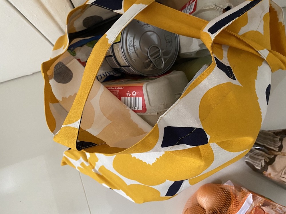마리메꼬(marimekko)의 노랑 우니꼬 에코백입니다.