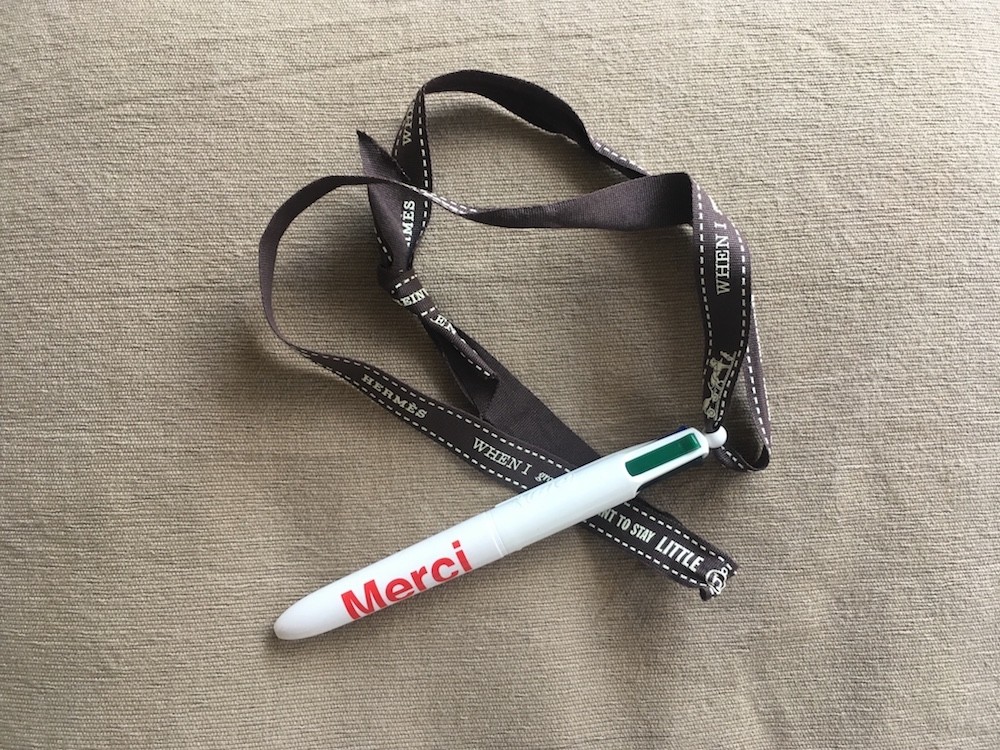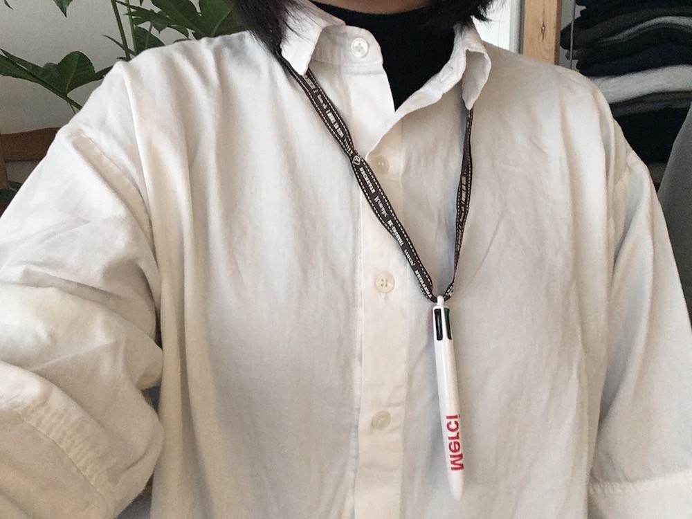 꼬리 부분에 끈을 걸 수 있는 고리모양이 있어서 저는 개인적으로 에르메스 포장끈을 묶어 목에 걸고 사용합니다. 끈을 묶어 사용하면 여러가지 볼펜 사이에서도 쉽게 찾을 수 있더라고요!