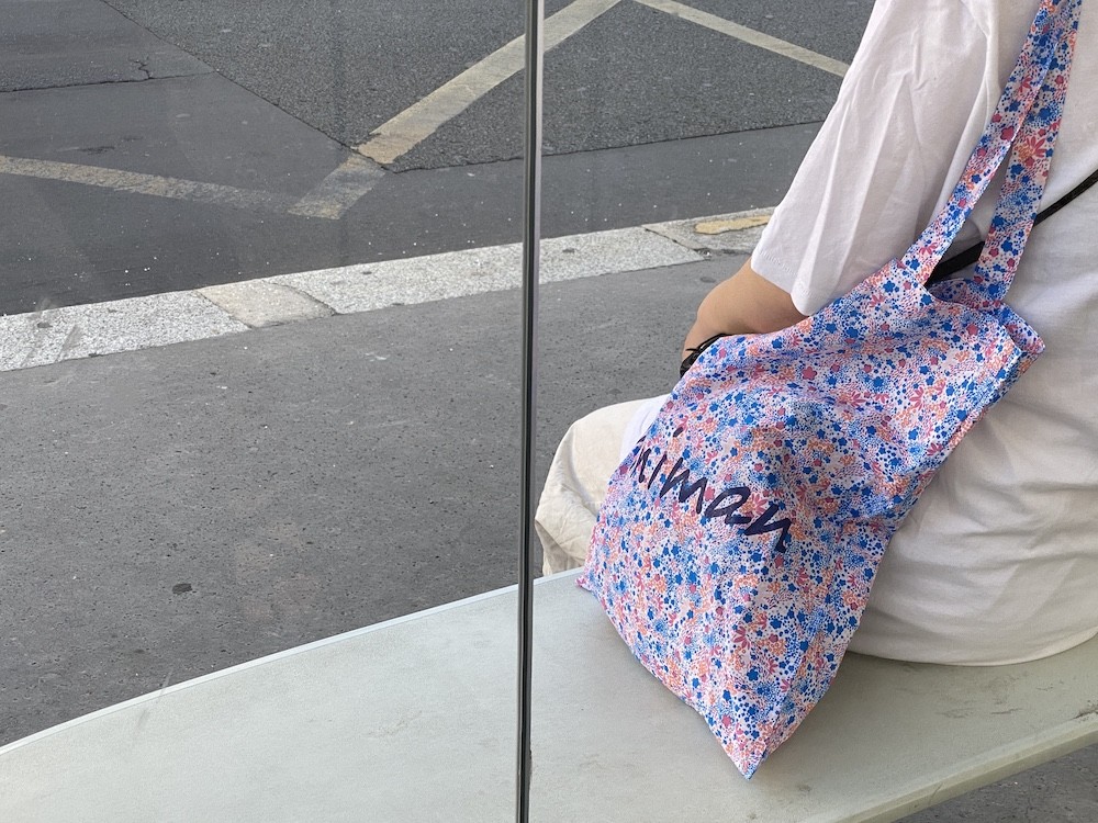 어느 날 웹 서핑을 하다가 이 잔꽃무늬 에코백을 발견했는데, 이게 어린이 브랜드이더라고요. 여기는 초등학생들도 에코백을 많이 메고 다니기 때문에 어린이용 에코백이 있는 것 같아요. 가벼운 소재라 가방 안에 넣어 가지고 다니다가 필요할 때 꺼내 쓰기도 좋고요. 귀여운 잔꽃무늬가 너무 튀지 않아서 여기저기 코디하시기 좋을 거예요.