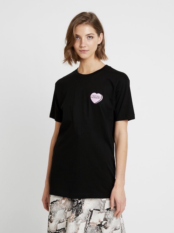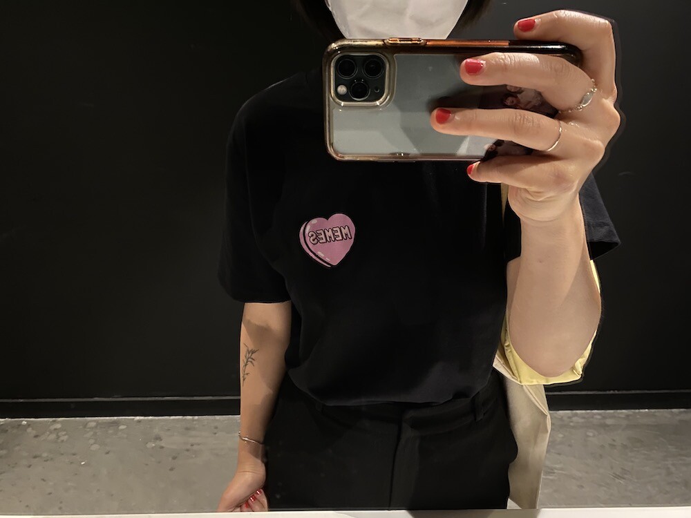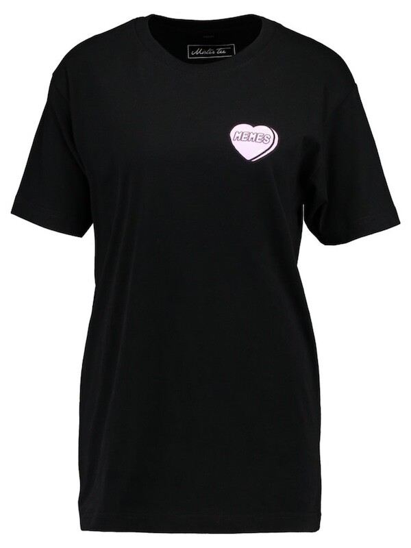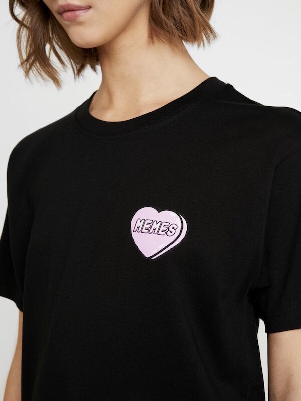미스터 티(Mister Tee)의 멤 MEMES 하트 티셔츠 검정, 여성 M 사이즈입니다.