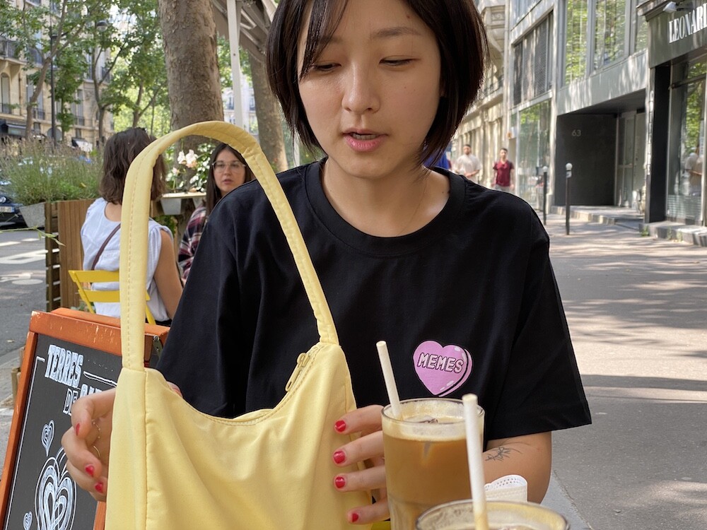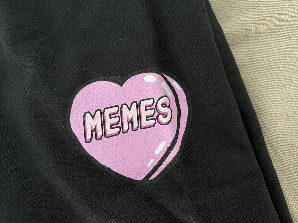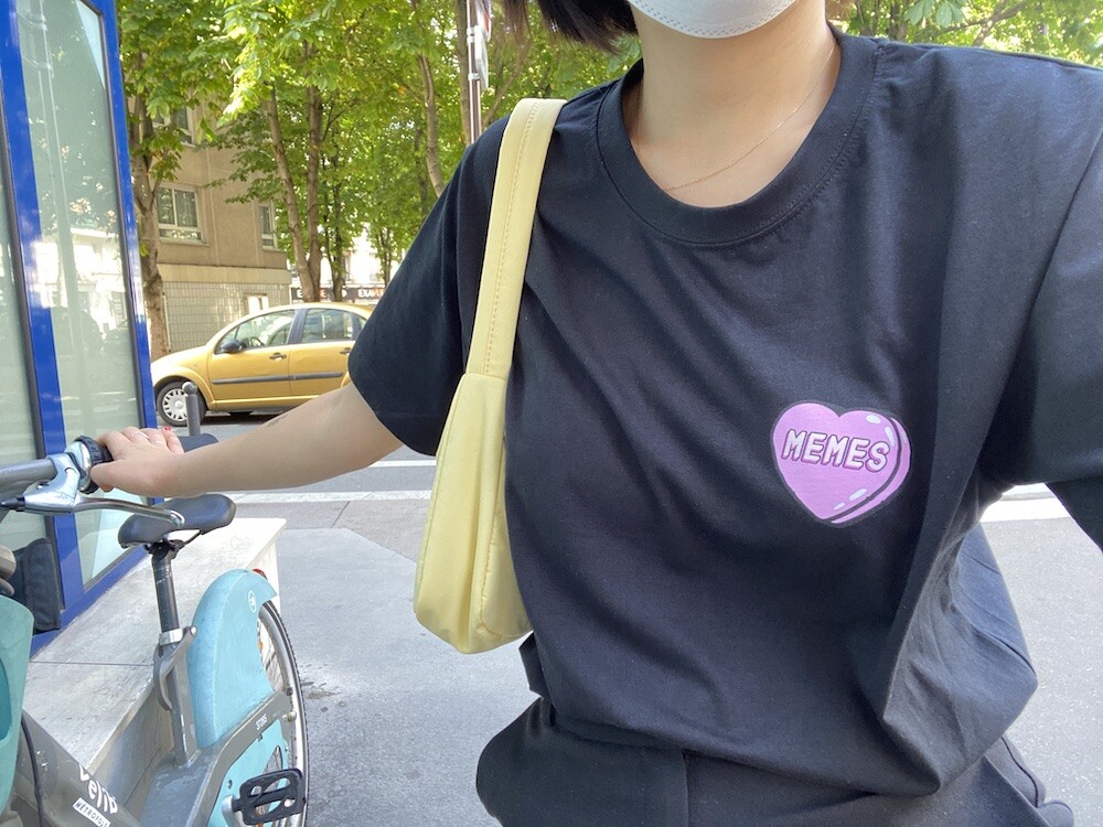 기본 면 티셔츠에 귀여운 하트 프린트가 되어있는 이 티셔츠는, 하트 위에 새겨진 멤 MEMES이라는 프랑스어 단어가 귀여우면서도 예뻐요. MEMES(mêmes)이라는 단어는 보통 '~와 같은"이라는 뜻으로 쓰이는데, 사람한테 쓰면 '그 자신'이라는 뜻이기도 해요. '나 자신' 같은 뜻인데 저는 이 단어가 참 좋더라고요. 단어 맨 뒤에 s가 붙어있기 때문에 '우리 자신, 그들 자신'같은 뜻이라고 생각하시면 될 것 같아요.