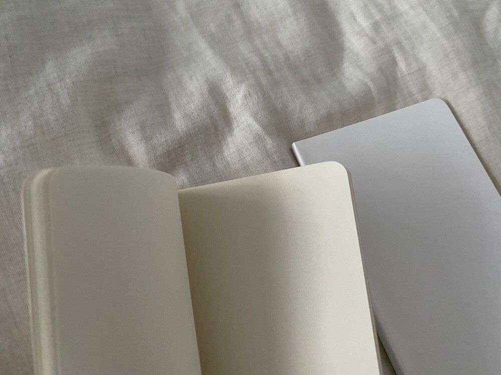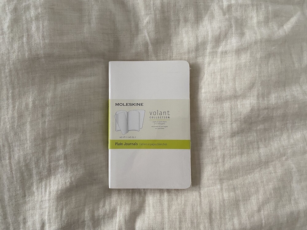 이 노트는 포켓 사이즈의 볼란트 노트 2권이 세트로 묶여진 제품으로, 흰색이 정말 예쁘게 잘 나왔어요. 제가 본 흰색 표지의 노트들 중 독보적인 색과 느낌을 자랑하는 제품입니다. 약간 미끄러지듯 하면서도 잉크를 잘 먹는 몰스킨만의 종이질은 사용해 보신 분들은 다 아실 거예요. 이 세트는 노트용으로 나온거라 잉크를 더 잘 흡수하는 종이를 사용한 것 같아요. 그래서 필기를 할 때 잉크가 마를 때까지 오래 기다릴 필요가 없어요.