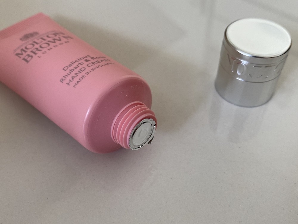 몰튼 브라운(MOLTON BROWN)의 핸드 크림 중 딜리셔스 루바브 앤 로즈 Delicious Rhubarb & Rose향입니다.