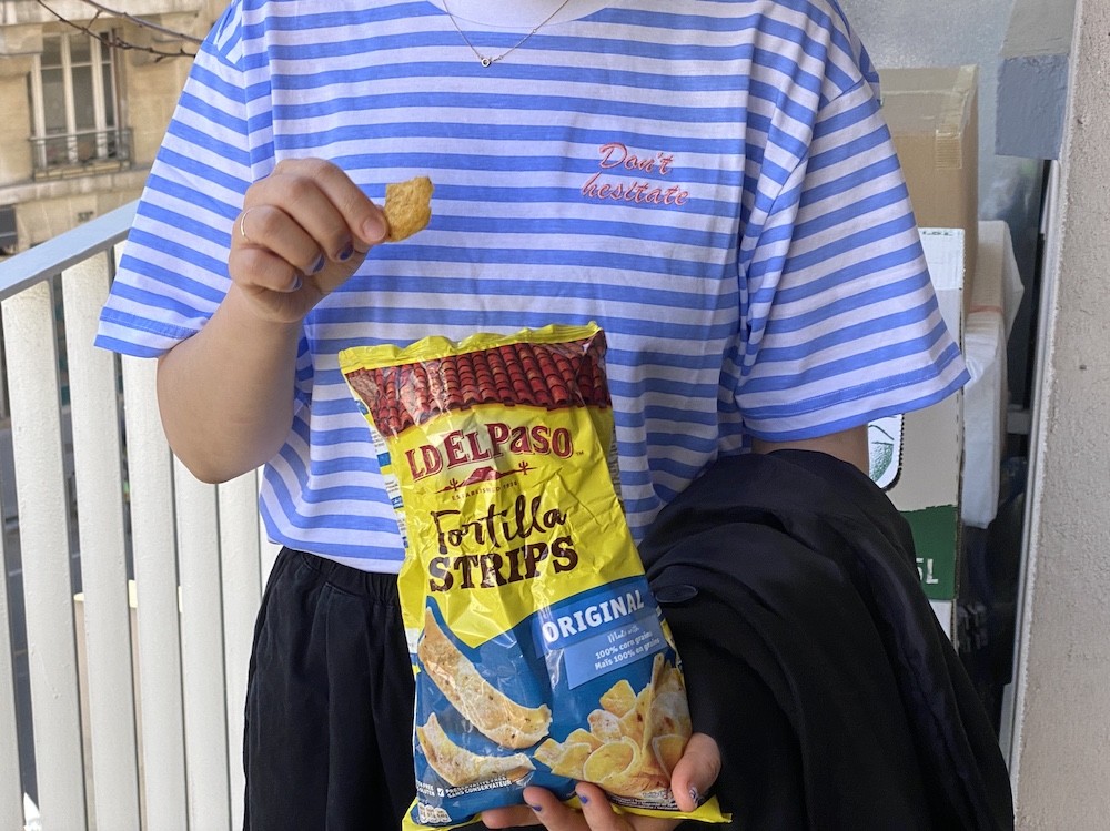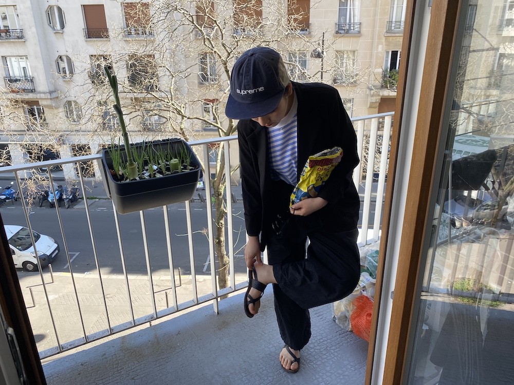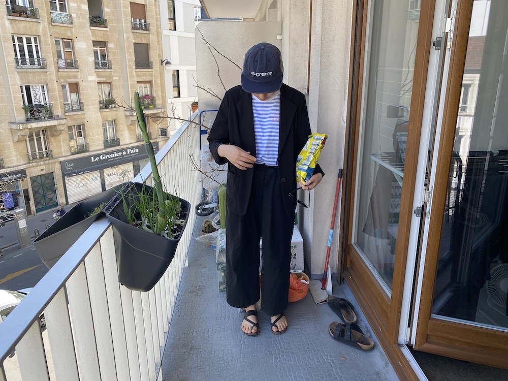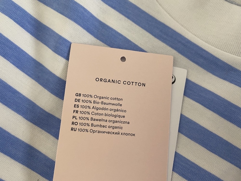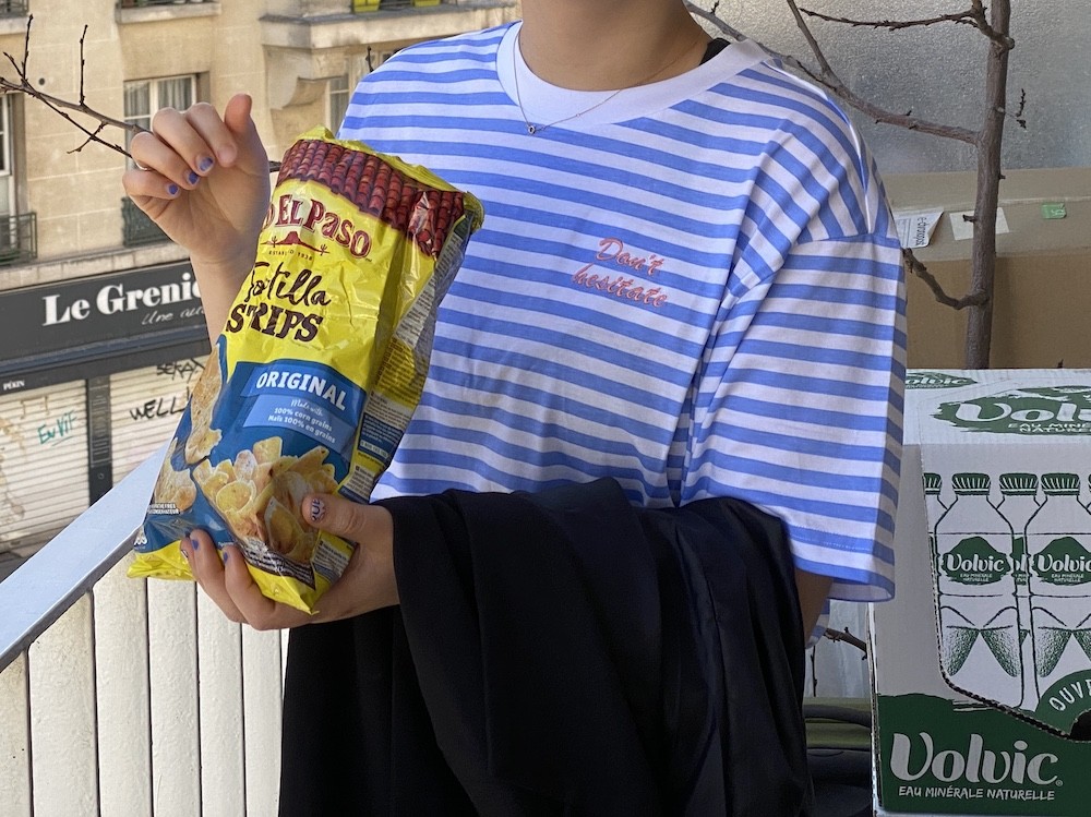 이 줄무늬 티셔츠는 색깔이 밝고 예뻐요. 소재감이 가벼워서 여름에 여기저기 입기 좋은 티예요. 하늘색 줄무늬에 가슴엔 분홍색으로 자수가 놓아져 있는데 "Don't hesitate 망설이지 마" 라고 써져있는 게 왠지 용기를 주는 것 같아 기분이 좋네요.
