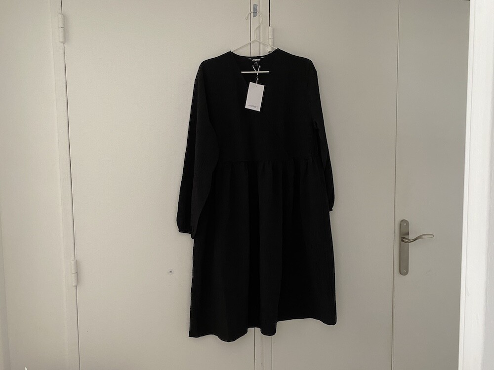 특히 이 브랜드는 몸에 들러붙지 않는 소재로 핏을 잘 만드는데 이 원피스도 마찬가지로 펑퍼짐한 원피스인데 입으면 몸이 날씬해 보여요. 제가 몽키를 좋아하는 이유 중 하나예요.