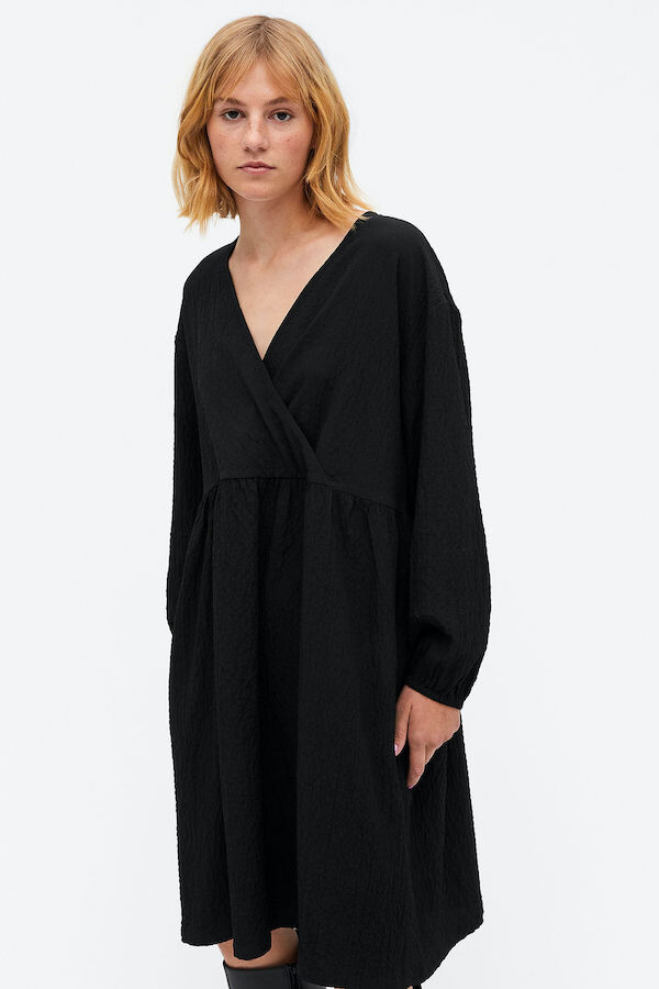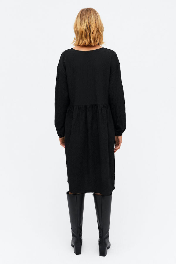 자글자글한 패턴감이 느껴지는 이 원피스는 원단에서 톡톡한 느낌이 들어서 너무 예뻐요. 물이 묻더라도 툭툭 털면 티가 안나서 실용성도 좋고, 사이즈가 넉넉해서 뱃살 걱정없이 편하게 입을 수 있는 것도 좋아요. 소재가 너무 두껍지 않아서 아주 더운 한여름 빼고는 나머지 계절에 단품으로 또 레이어드 해서도 잘 입을 것 같아요. 티셔츠처럼 훌렁 입었다가 벗을 수 있어서 입고 벗는 시간도 엄청 빨라요 :)