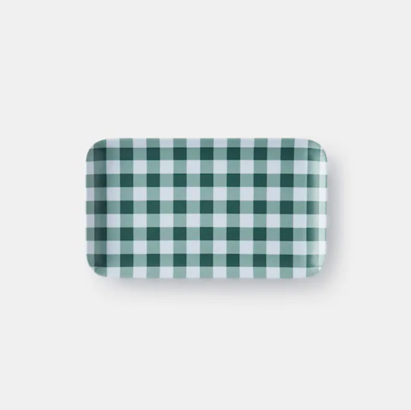 이 깅엄 체크 트레이는 멜라민 소재에 체크 무늬를 입힌 트레이로, 책상 위에 올려놓고 작은 물건들을 올려 놓기에 좋아요. 음식용이 아니기 때문에 음식을 직접 놓으시는 건 추천하지 않지만 그릇에 담은 음식과 함께 포크나 스푼 등을 올려놓기에 좋아요. 볼펜이나 작은 문구류를 올려 놓아도 귀엽고요.