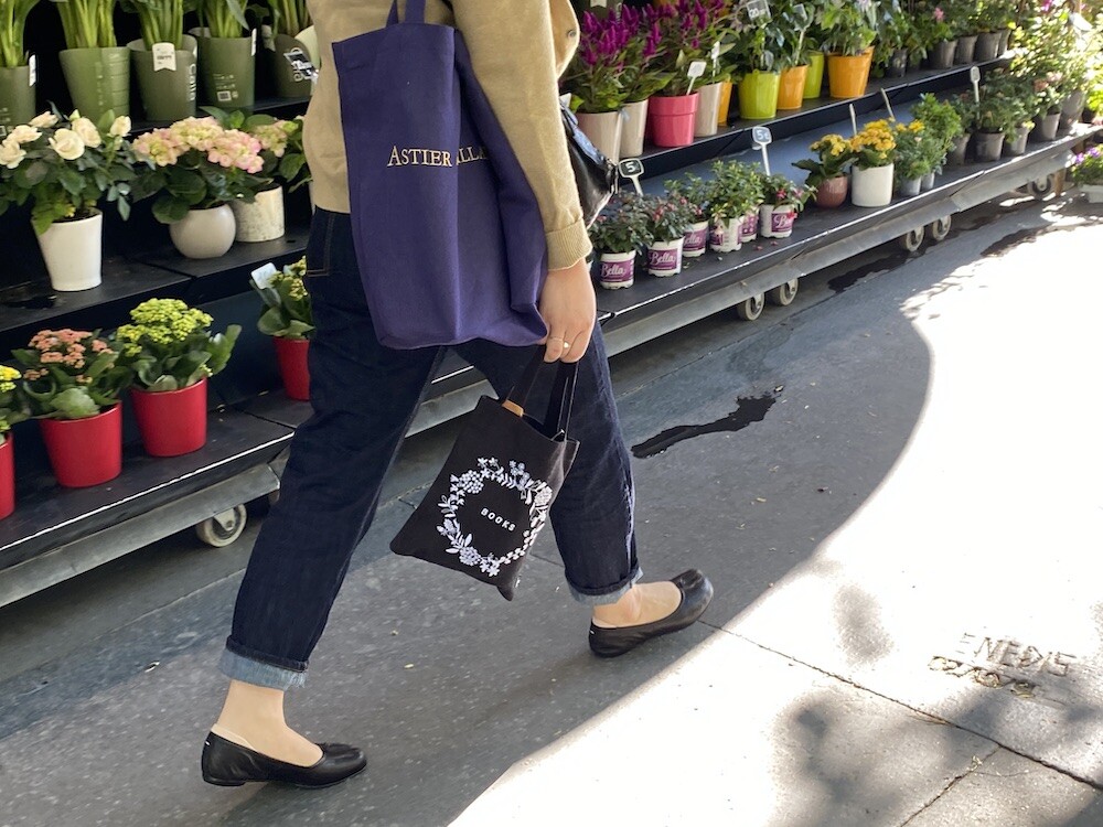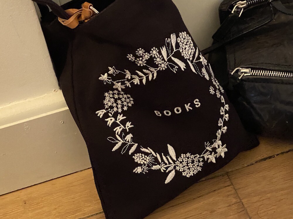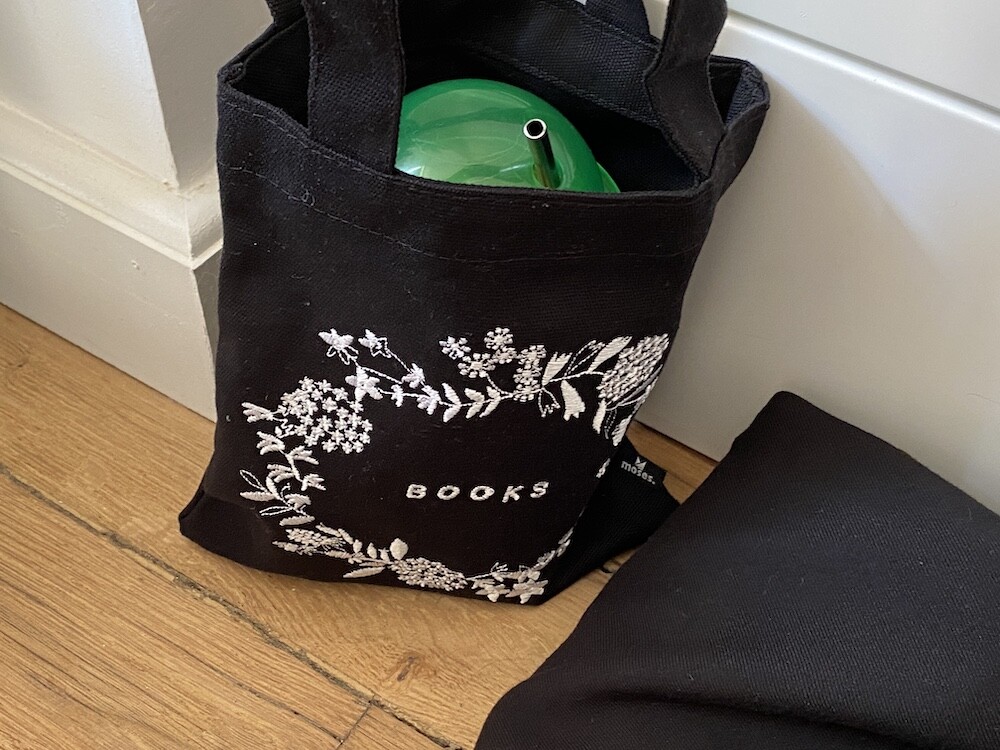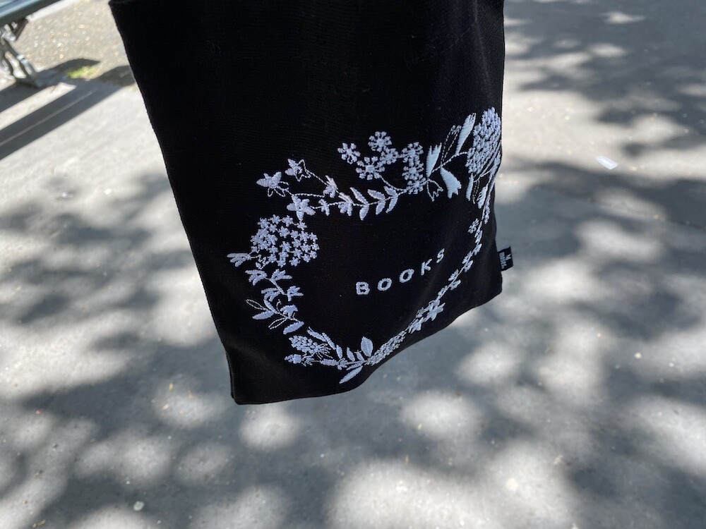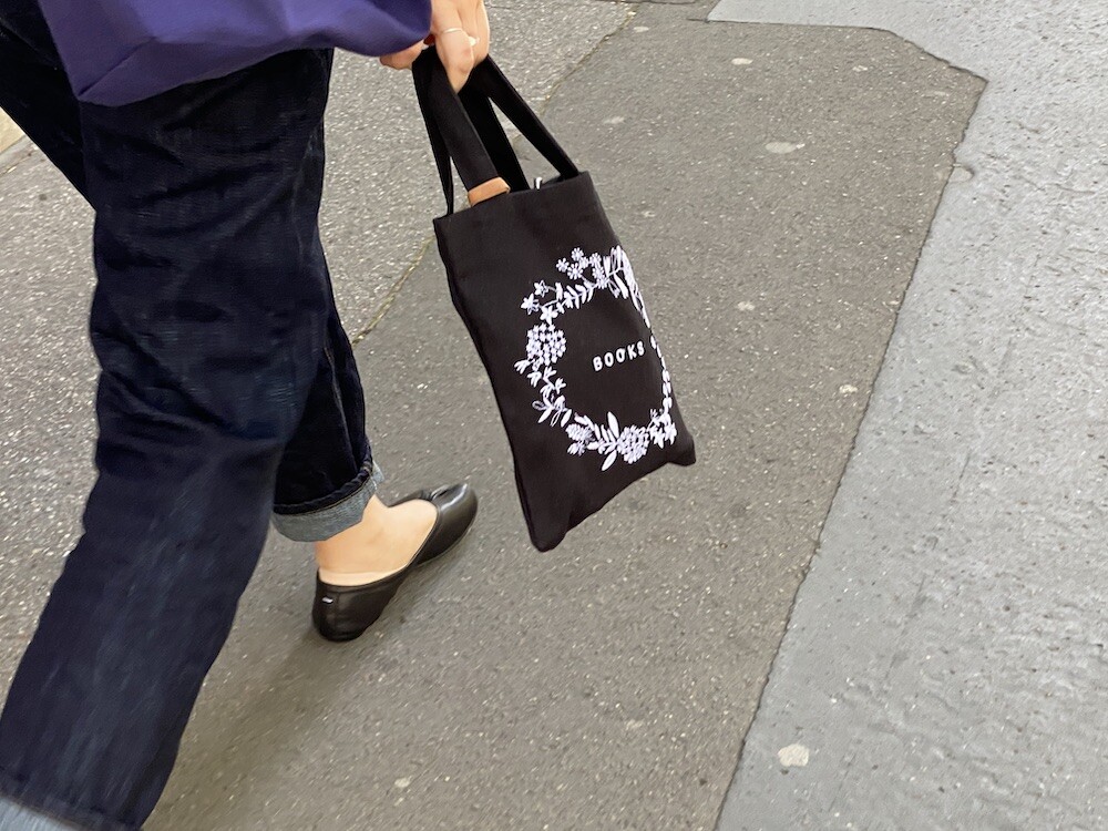 바느질 꼼꼼하고요, 두툼한 원단이라 내구성도 좋아요. 좋아하시는 책 한두권쯤 넣어 손목에 걸고 다니시면 너무 귀여울 것 같아요. 게다가 꽃 무늬와 함께 BOOKS라는 글씨가 자수로 놓여 있어요! 귀여운 포인트들이 너무 많은 가방이랍니다.