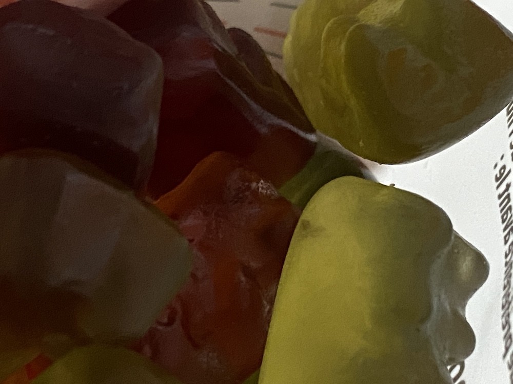 이 젤리의 식감은 우리가 알고있는 하리보와는 많이 달라요. 하리보는 고무같이 쫀득한 느낌이라면 낫 길티의 젤리는 양갱과 젤리의 중간 정도의 식감이에요. 아이들이 먹기에도 부담스럽지 않을 것 같고, 다 씹히지 않은 채로 목구멍으로 꿀떡 넘어가는 느낌이 없어서 좋더라고요. 게다가 이 곰젤리는 레몬, 오렌지, 딸기, 사과, 카시스 이렇게 5가지 맛이 들어있어서 지루하지 않게 먹을 수 있어요.