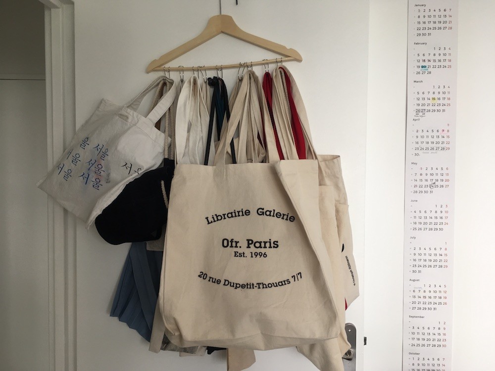 Ofr. 파리 서점의 빅사이즈 에코백입니다. 기본 사이즈보다 훨씬 튼튼한 소재와 단단한 박음질로 내구성이 좋아서 짐 많이 가지고 다니시는 분들께서 안정감 있게 메실 수 있을 것 같고요, 사이즈가 넉넉해서 남자분들이 메시기에도 좋아요. 커플 가방으로 메셔도 좋을 것 같고요.