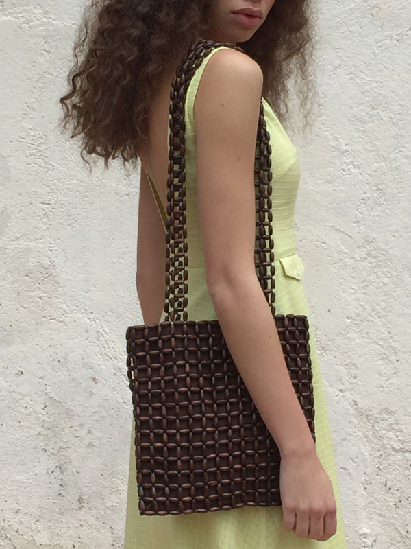 팔로마 울(Paloma Wool) Natalia 우든백 중 다크 브라운 색상입니다.