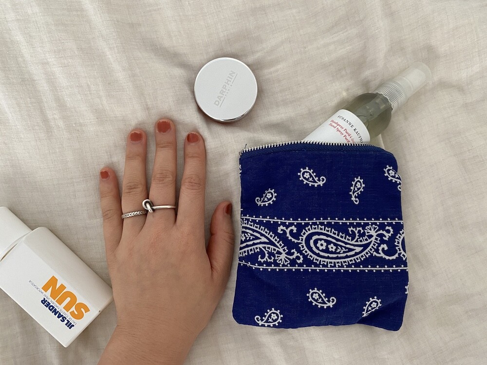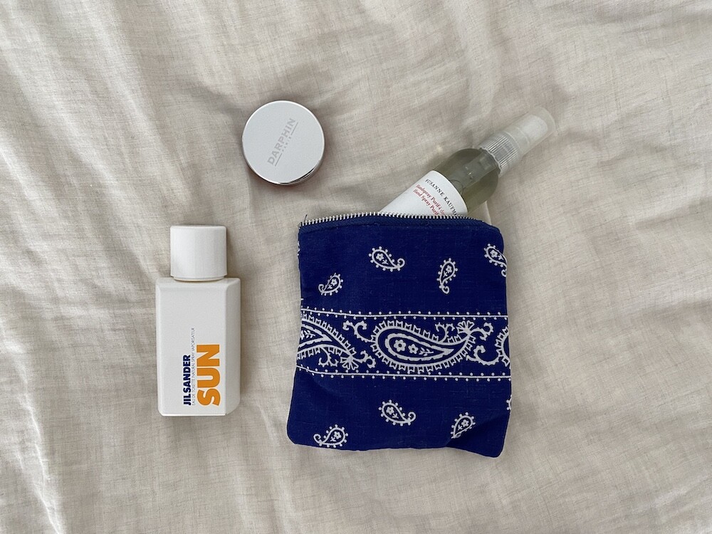 이 파우치는 반다나를 잘라 만든 것 같은 패턴인데요. 사이즈가 작아서 가방 속에 쏙 넣고 다니기 좋으실 거예요. 크기가 또 아주 작지는 않아서 웬만한 향수도 거뜬히 들어가요. 향수, 립스틱, 핸드크림 등등 필요한 물건들 야무지게 넣어서 들고 다니실 수 있어요.