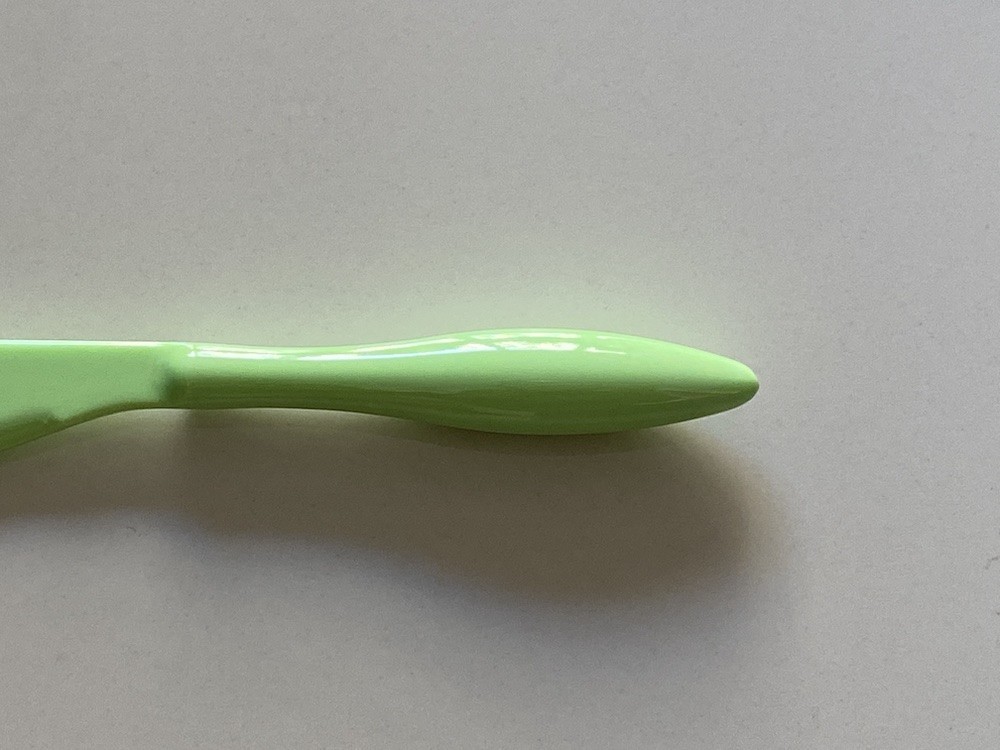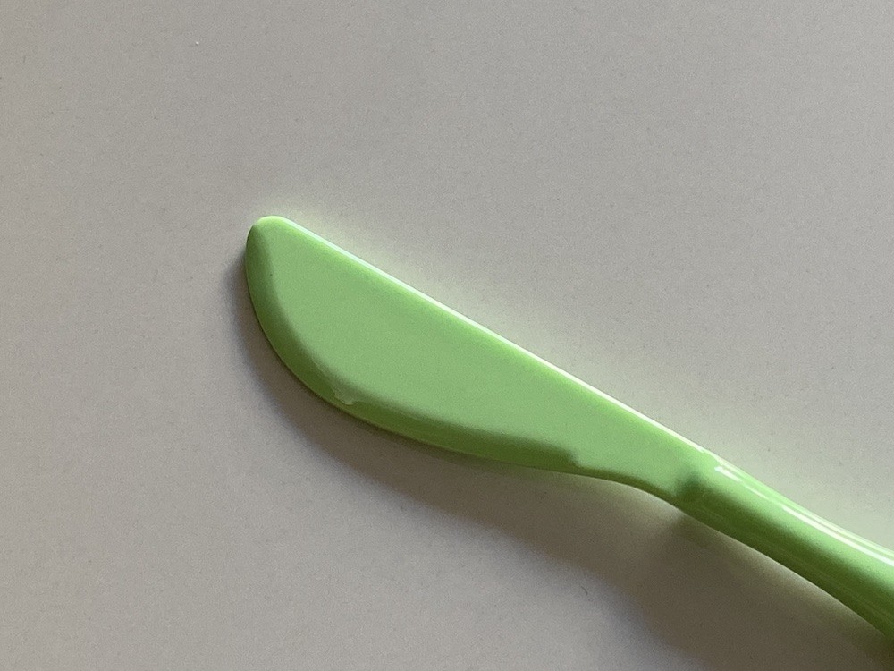 이 나이프는 어린이도 사용 가능한 제품이라 안전하게 마감을 하였기 때문에 뭔가를 자르는 용도보다는 펴바르는 용도로 사용하시는 게 좋을 것 같아요. 잼이나 버터를 펴바르기에 딱 좋은 나이프입니다.