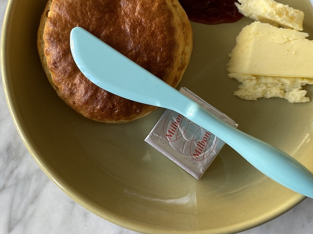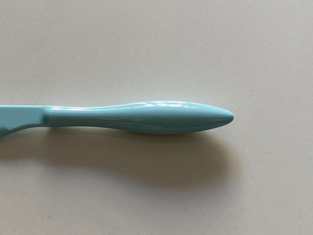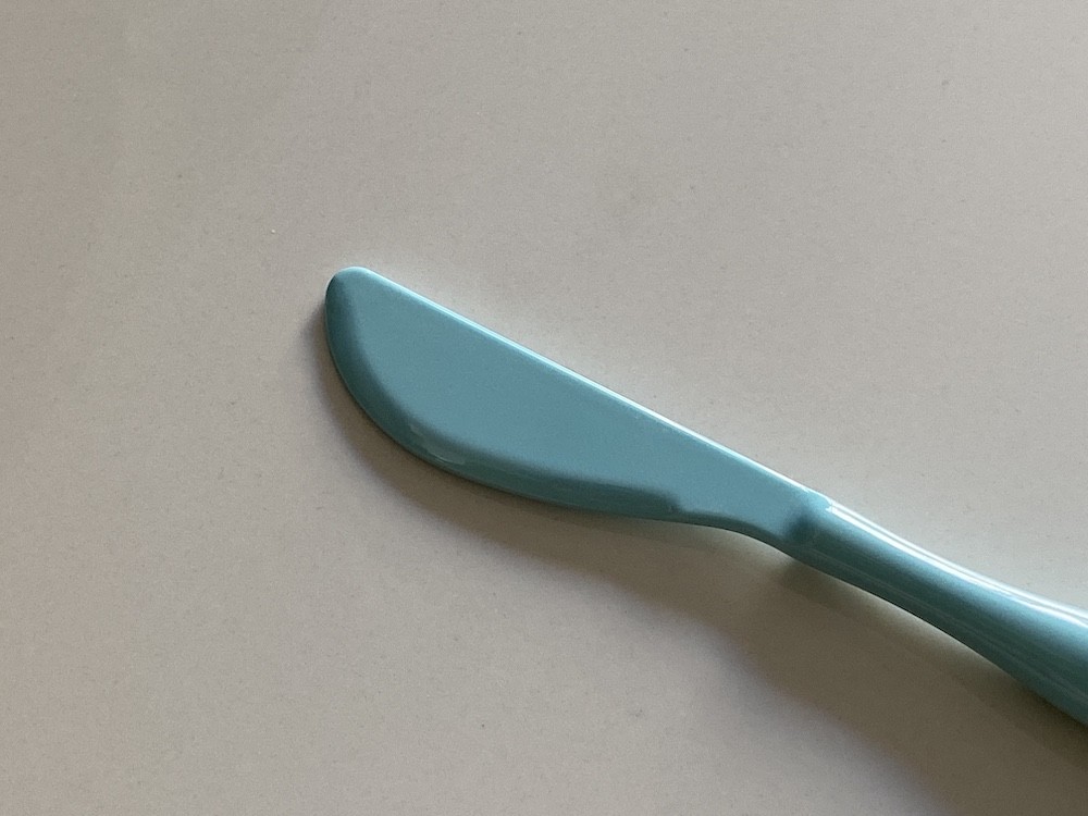 이 나이프는 어린이도 사용 가능한 제품이라 안전하게 마감을 하였기 때문에 뭔가를 자르는 용도보다는 펴바르는 용도로 사용하시는 게 좋을 것 같아요. 잼이나 버터를 펴바르기에 딱 좋은 나이프입니다.