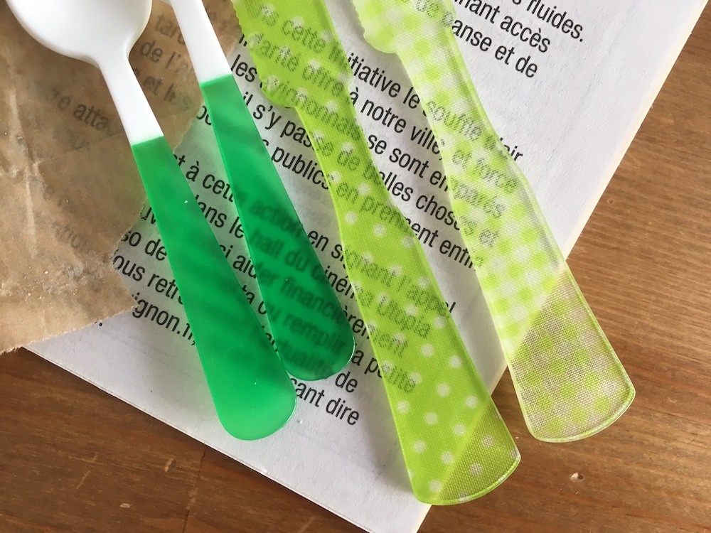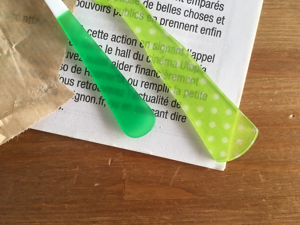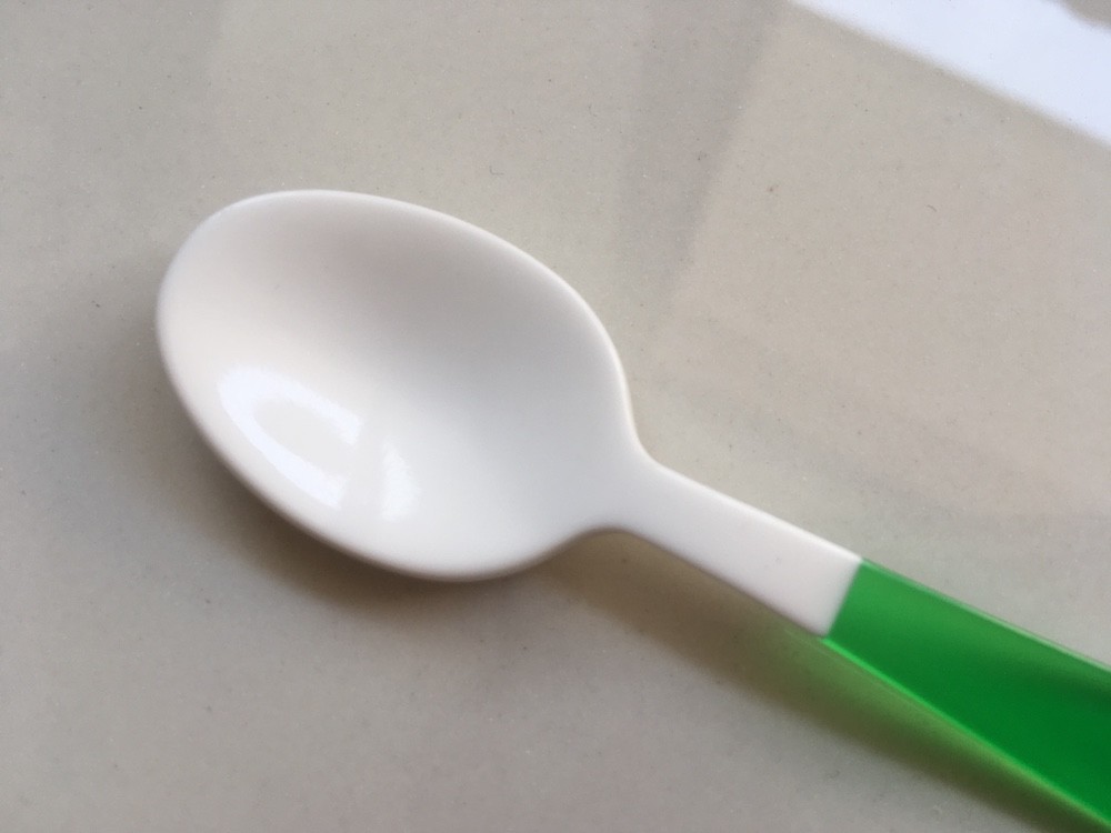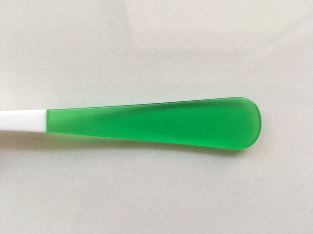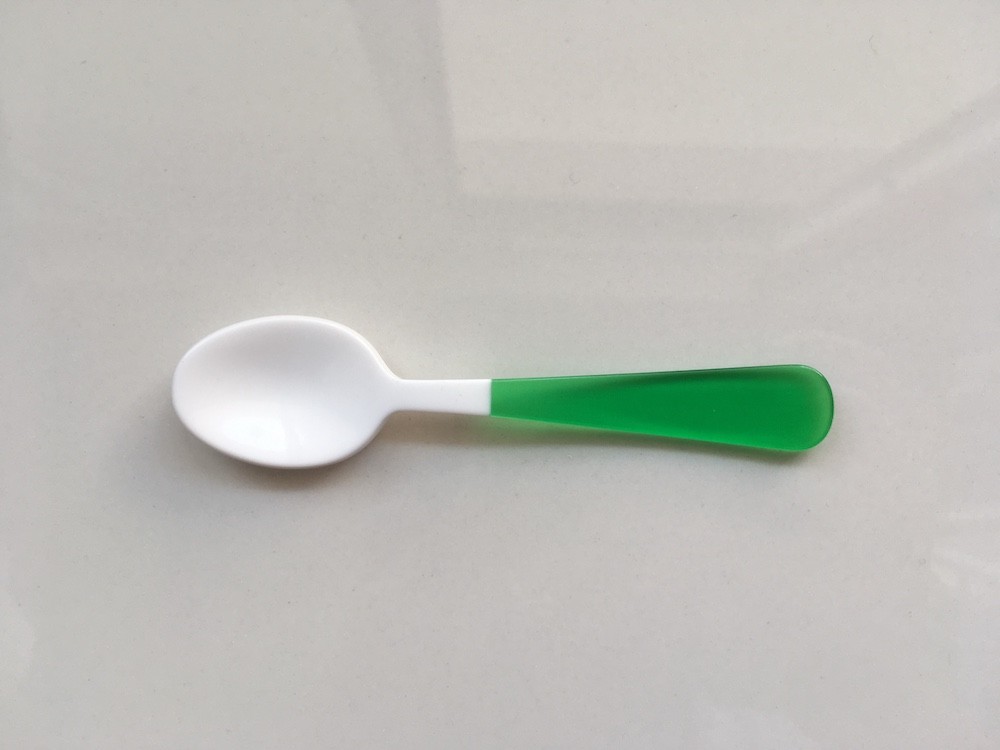 뭐 하나 찾겠다고 하면 끝까지 찾아내는 성격이라, 몇달을 뒤져 파리에 남은 재고를 긁어 모았습니다! 특히 이 스푼은 이제까지 보기 어려웠던 새로운 스타일의 스푼이라 더 특별해요. 스푼의 머리 부분엔 불투명 흰색 아크릴, 손잡이 부분엔 투명한 초록색 아크릴을 붙여 깎은거라 모양이 특이하고 깜찍해요.