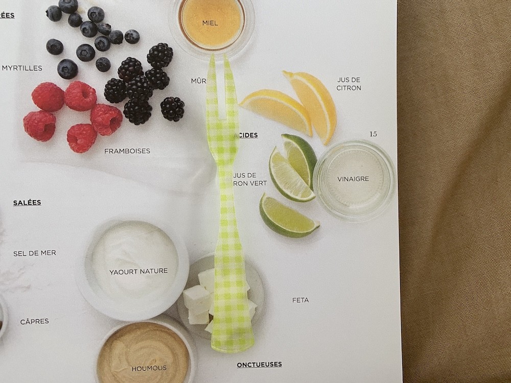 프렌치 커트러리 브랜드 사브르 파리(SABRE PARIS)의 칵테일 포크 연두 체크입니다.