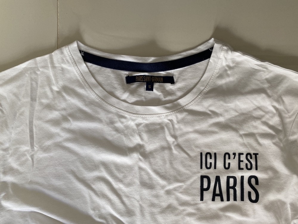 축구, 핸드볼 등의 운동 경기에서 프랑스 파리 팀을 가리키는 "파리 생제르망(PARIS SAINT-GERMAIN)"을 응원하는 팬들을 위한 티셔츠로, 파리 생제르망 공식 굿즈샵에서 판매되는 공식 티셔츠예요. 남성용 S 사이즈로, 여성분들이 입기 딱 좋은 사이즈예요. 스포츠 용품을 만드는 브랜드에서 라이센스를 받아 만든 티셔츠로, 땀흡수가 빠르게 되는 소재라 운동할 때 입으니까 진짜 좋더라고요!