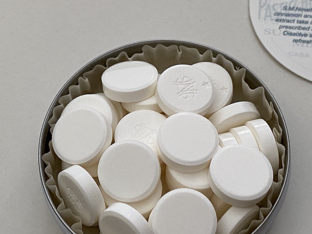 산타 마리아 노벨라의 허브 전문가 형제에 의해 선택된 재료들로 만들어진 이 민트는 입안을 상쾌하게 하고 갈증을 풀어줄 뿐 아니라 소화 기능까지 있다고 해요. 이 정도면 약이라고 해도 될 것 같아요.