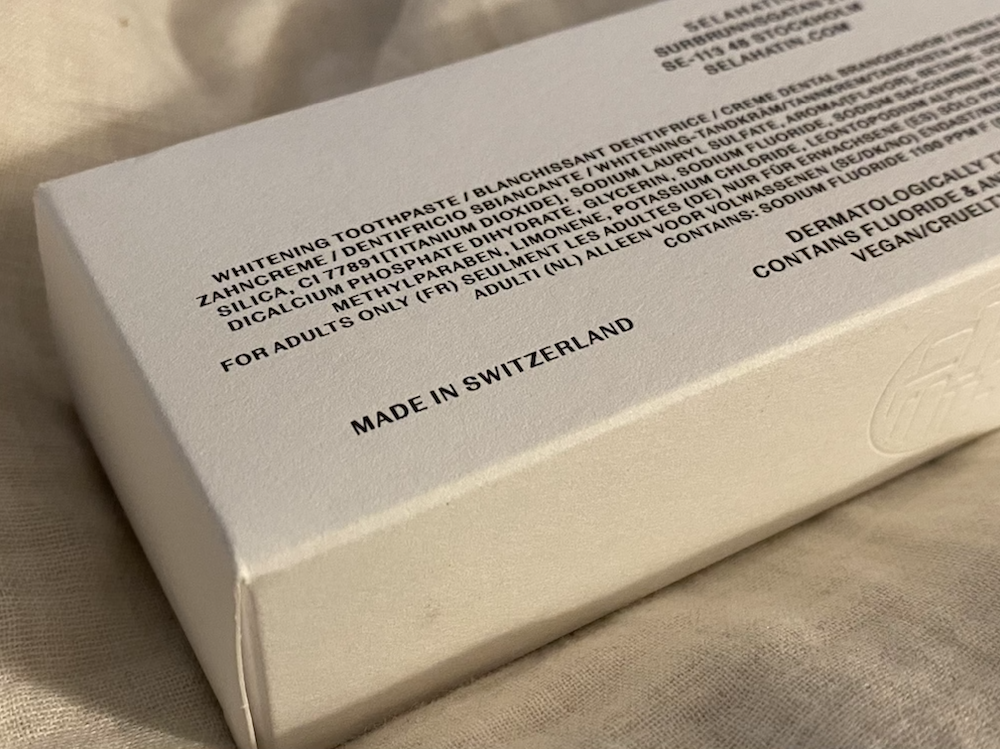 게다가 이 치약은 스웨덴 브랜드이지만 스위스에서 만들어졌어요. 왠지 믿음이 가는 두 나라 아닌가요?