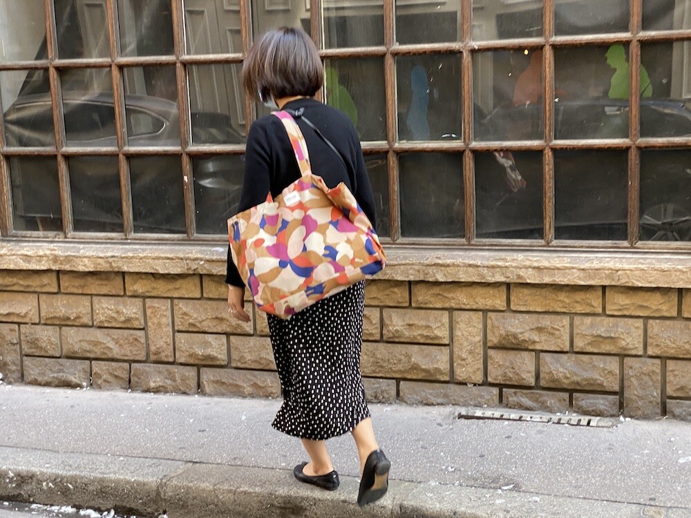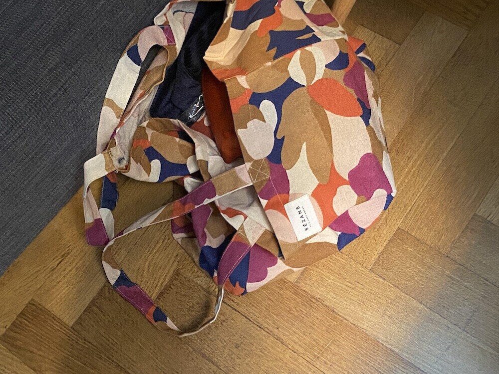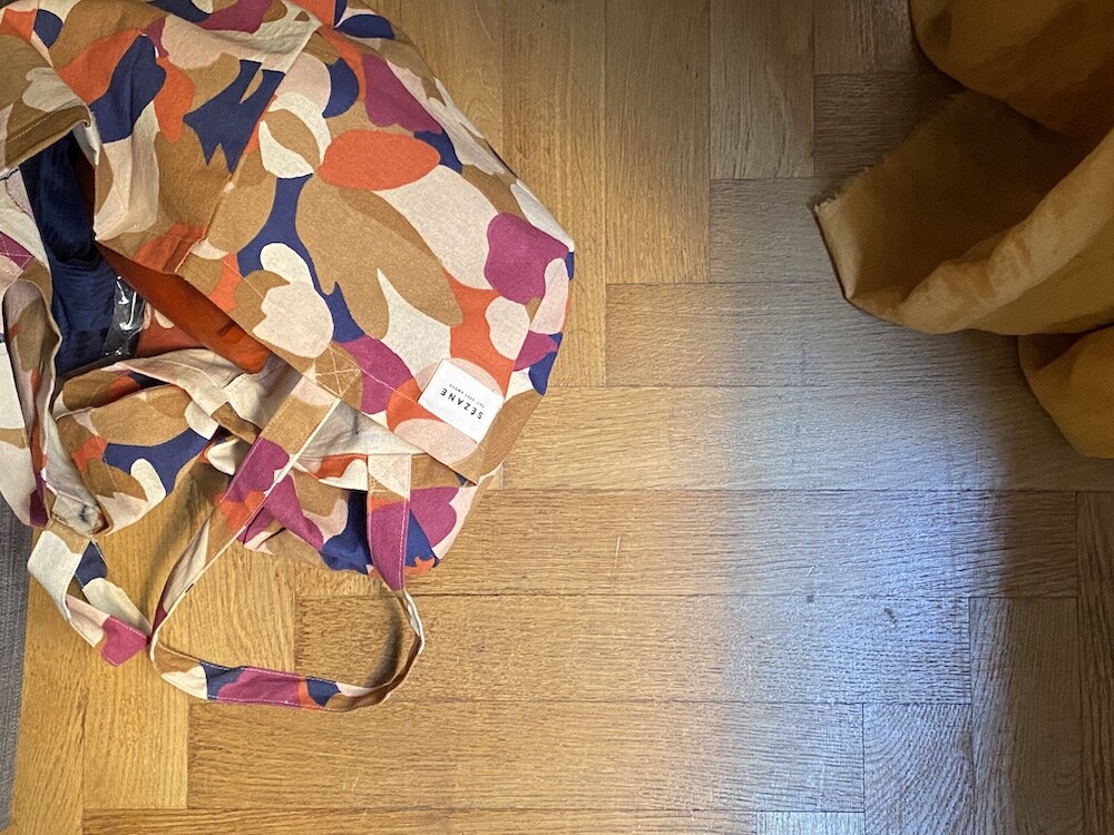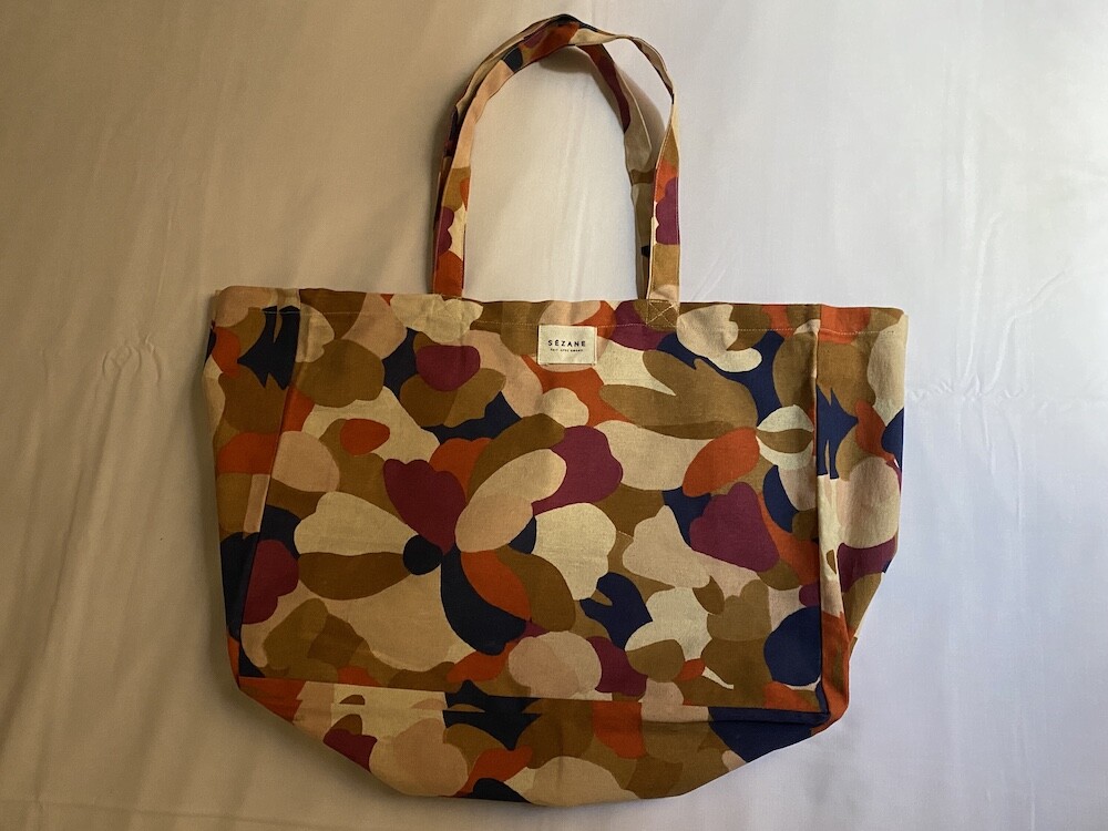 이 에코백은 세잔의 대표 디자인으로, 매 시즌 같은 사이즈에 원단만 다르게 하여 나오는 제품이에요. 매 시즌 한정 수량만 나오기 때문에 수량이 많지 않고, 시즌이 끝나고 나면 같은 제품은 나오지 않기 때문에 희소성이 있어요. 꽃 모양을 카무플라쥬처럼 프린트 한 원단과 무심한 듯 박음질 된 세잔 로고 택도 정말 예뻐요.