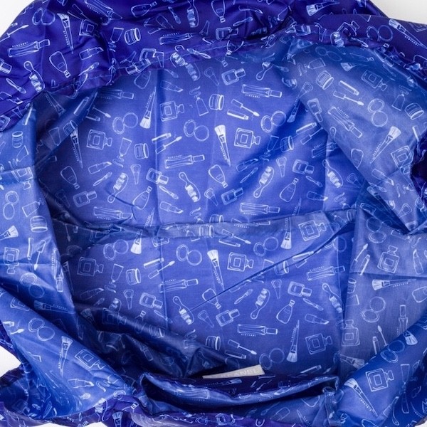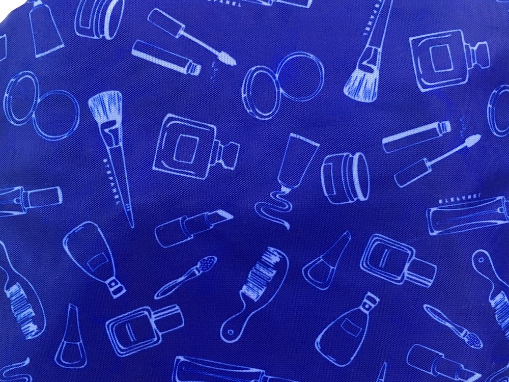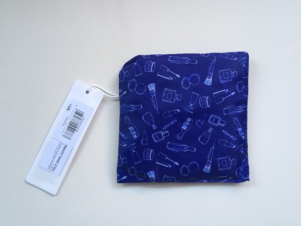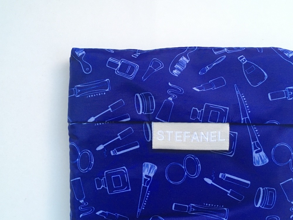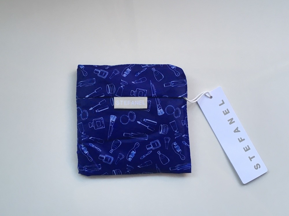 부피가 크지 않아서 가방 속에 쏙 넣고 다니다가 필요한 순간에 꺼내서 사용할 수 있고, 합성 소재로 무게가 아주 가벼워서 실용성이 좋아요. 원단에 그려진 화장품 그림과 그 옆에 깨알같이 씌여진 STEFANEL 글씨도 참 귀엽고요.