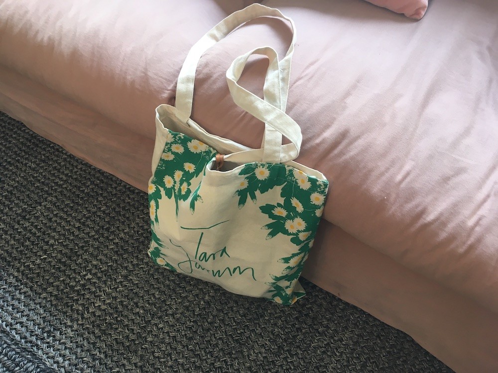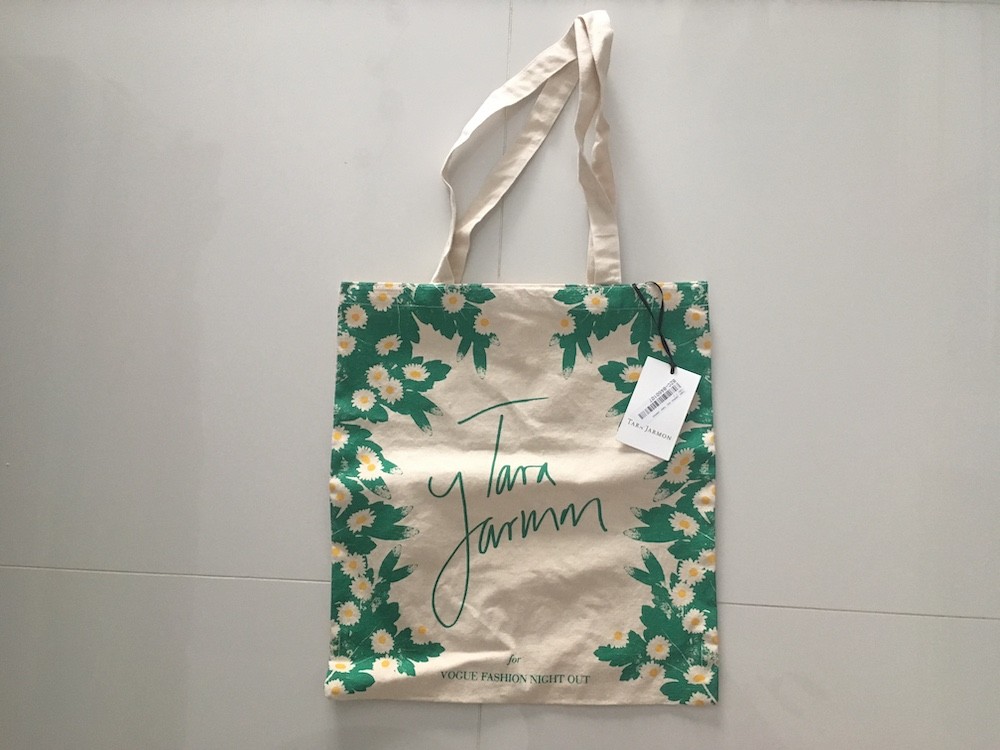 이 가방은 타라 자몽이 패션 잡지 보그의 연중 이벤트인 보그 패션 나이트 아웃(VOGUE FASHION NIGHT OUT)을 위해 특별히 제작했던 에코백으로 그 기간이 아니면 살 수 없는 가방이었기 때문에 더 희소성이 있는 제품이에요. 탄탄한 면 위에 프린트된 꽃, 나뭇잎의 모양과 타라 자몽이라는 글씨가 잘 어우러졌고요. 예쁜 초록색이 기분까지 좋게 만들어주는 것 같아요.