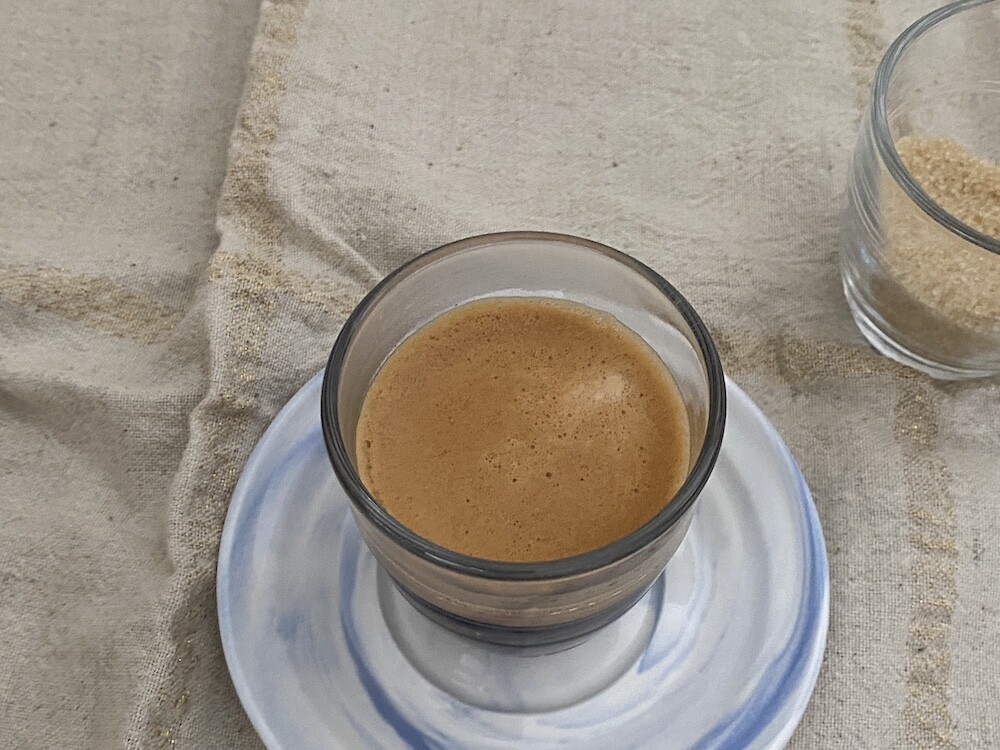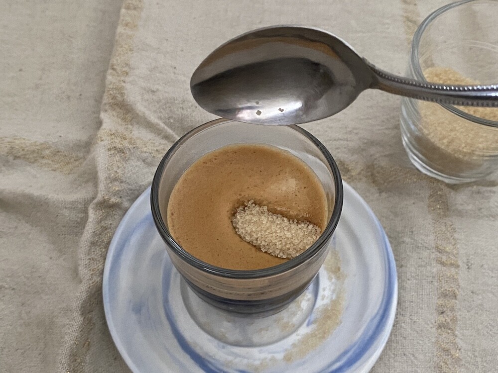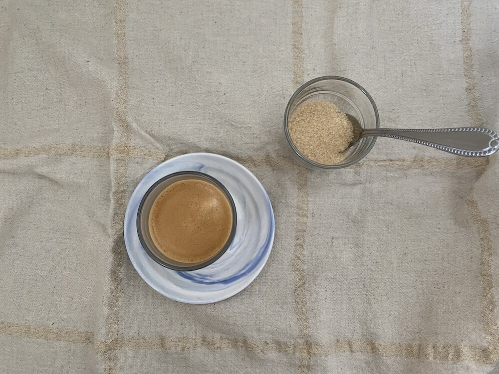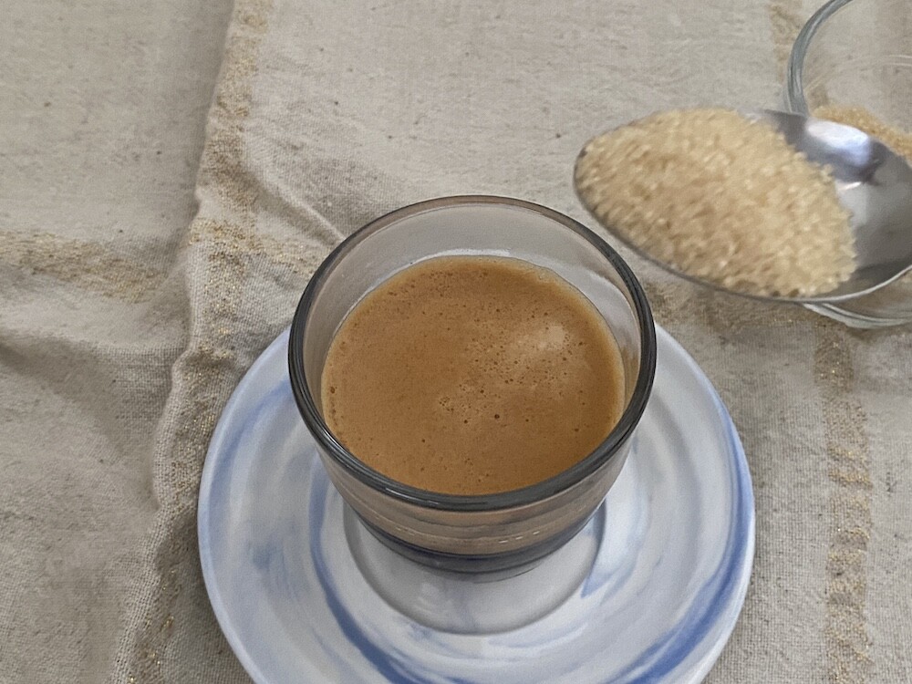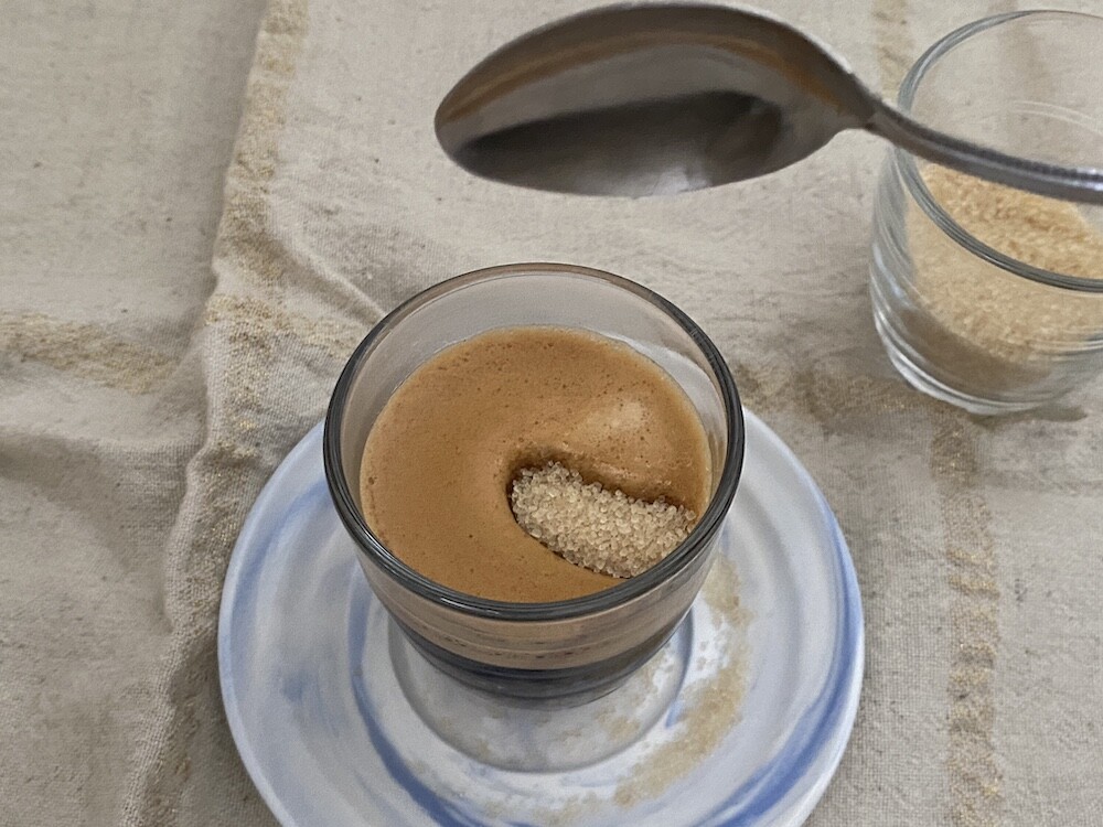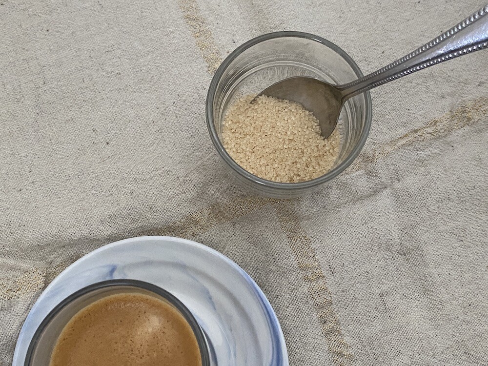 정말 맛있는 프랑스 커피, "누와제트" 만드는 방법을 알려드릴게요. 에스프레소 한 샷에 동량의 스팀 밀크를 넣어요. 그리고 그 위에 이 사탕수수 설탕을 한 커피스푼 듬뿍 넣어요. 그러면 밑으로 내려가면서 설탕이 눅진하게 녹아 바닥에 깔리는데, 사각사각 씹히면서 달콤한 커피의 마지막 한방울을 마시는 순간, 이게 행복의 맛이구나 싶을 거예요.