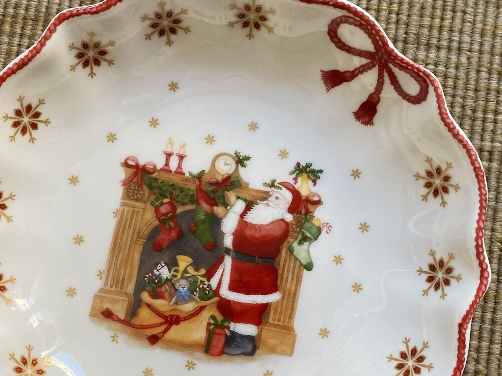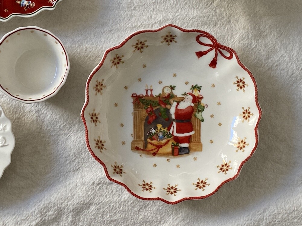 빌레로이 앤 보흐(Villeroy & Boch) Annual Christmas Edition 크리스마스 에디션 산타 리본 그릇(2019년 버전)입니다. Villeroy & Boch는 프리미엄 도자기 식기, 크리스탈 유리 잔, 스테인리스 스틸 수저 및 데코레이션 제품으로 유명한 브랜드죠.