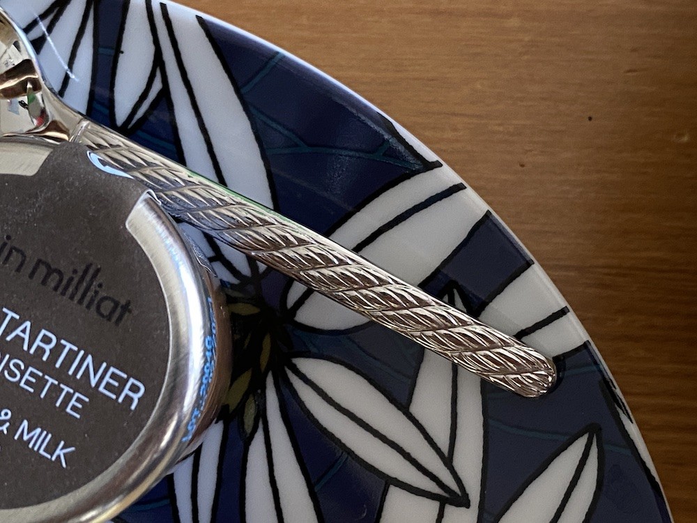몽똑 Montauk은 바닷가에서 영감을 받은 라인으로, 손잡이 부분이 소라 껍질같은 모양이라 귀여워요. 스푼의 모양만으로도 데코가 되는 느낌이라 식탁에 커트러리를 올려놓는 것만으로도 생기가 확 돌아서 좋더라고요.
