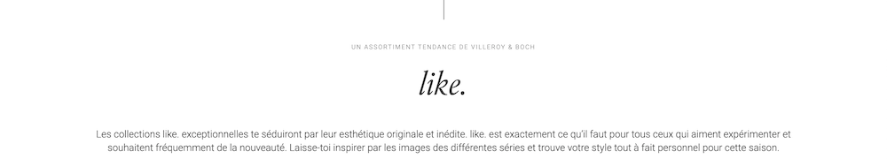 빌레로이 앤 보흐(Villeroy & Boch)는 프리미엄 도자기 식기, 크리스탈 유리 잔, 스테인리스 스틸 수저 및 데코레이션 제품으로 유명한 브랜드죠. '라이크. 바이 빌레로이 앤 보흐(like. by Villeroy & Boch)'는 빌레로이 앤 보흐가 진행하는 컬렉션의 이름이에요. 꾸준히 나오는 빌보의 클래식 라인과는 다르게, 계절과 유행을 고려한 다양한 디자인을 선보이는 컬렉션이에요.