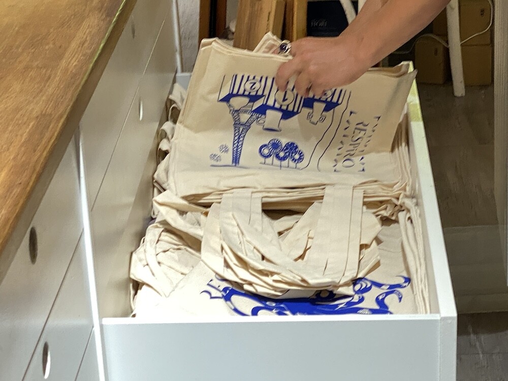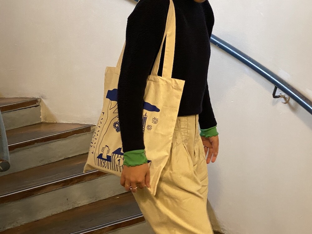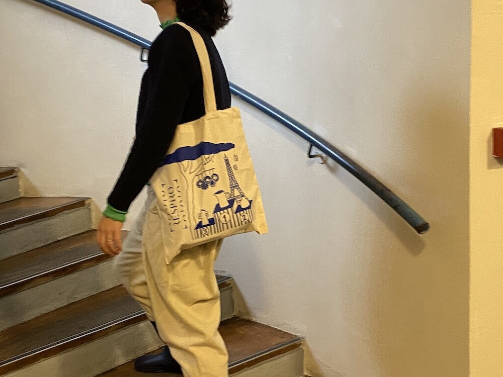 장식용품점의 특징을 잘 담은 그림이 프린트된 에코백입니다. 이 에코백은 세라믹으로 작업을 하시는 분과의 콜라보로 만들어진 가방이라고 하더라고요. 그래서인지 다양한 도자기들이 그려져 있어요. 거기에 파리의 상징인 에펠탑 그림까지 그려져 있어서 예뻐요.