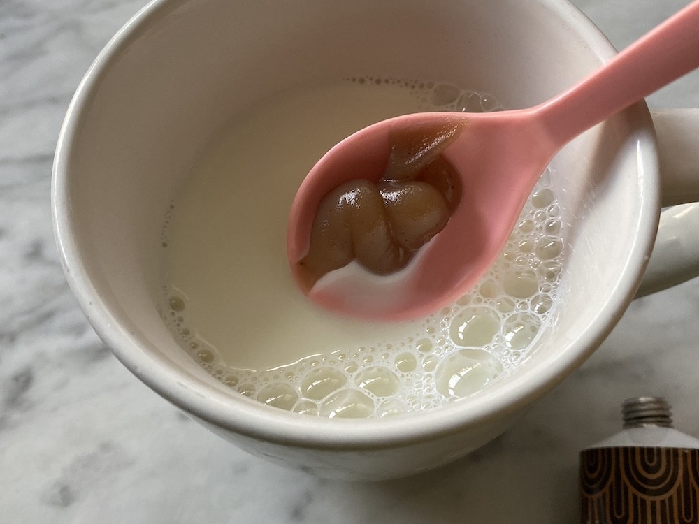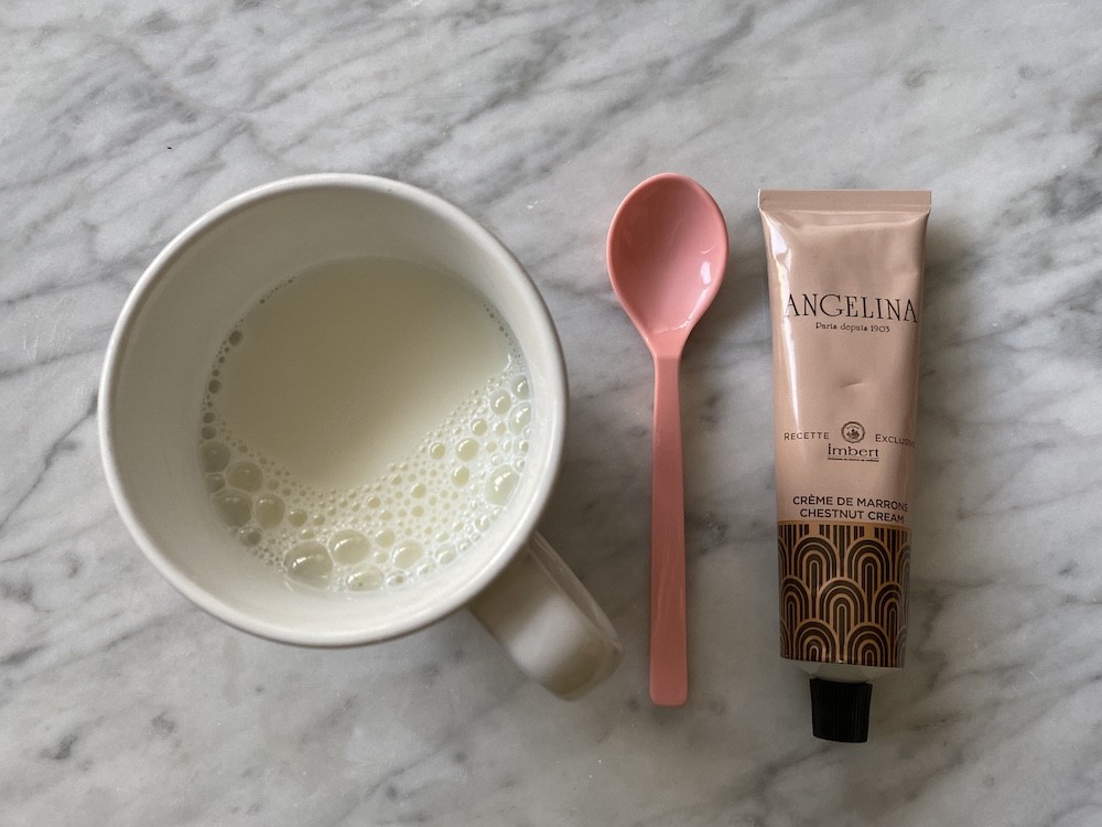 우유에 타서 먹으면 아주 부드럽고 달콤한 밤 라떼가 되기 때문에 아이들이 정말 좋아할 것 같아요. 빵과 함께 드실 때에는 빵 자체에 강한 맛이 없는, 식빵같은 빵을 선택하세요. 무엇보다 이 크림은 그냥 먹을 때 가장 맛있기 때문에 함께 곁들이는 재료에 튀는 맛이 없는 것들을 골라야 밤크림의 매력이 도드라져요.