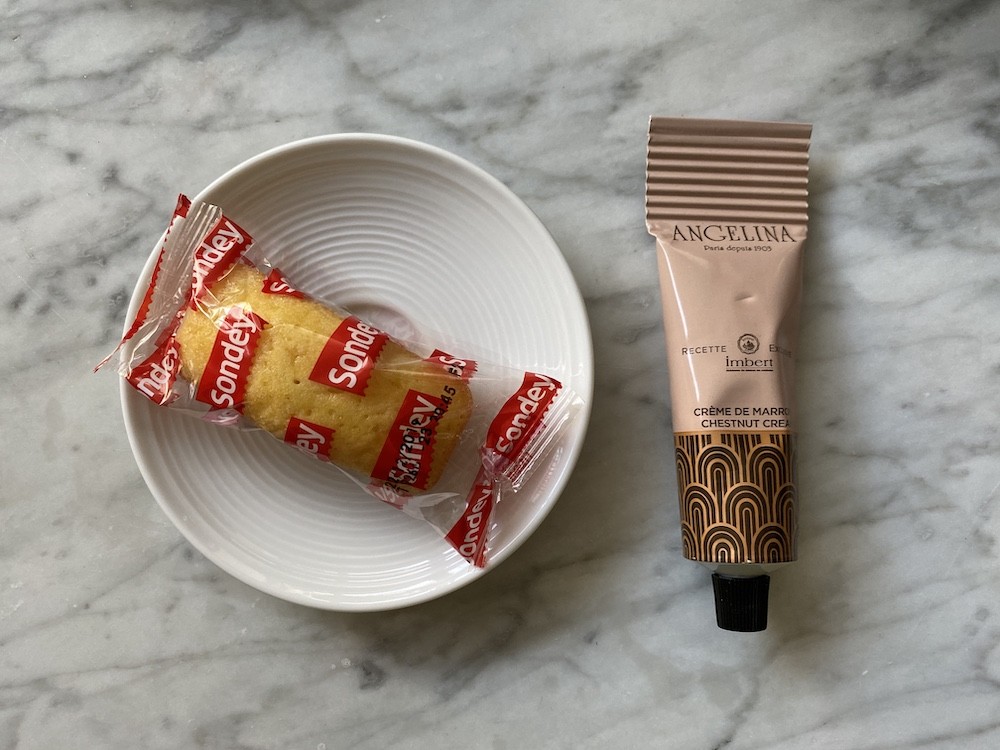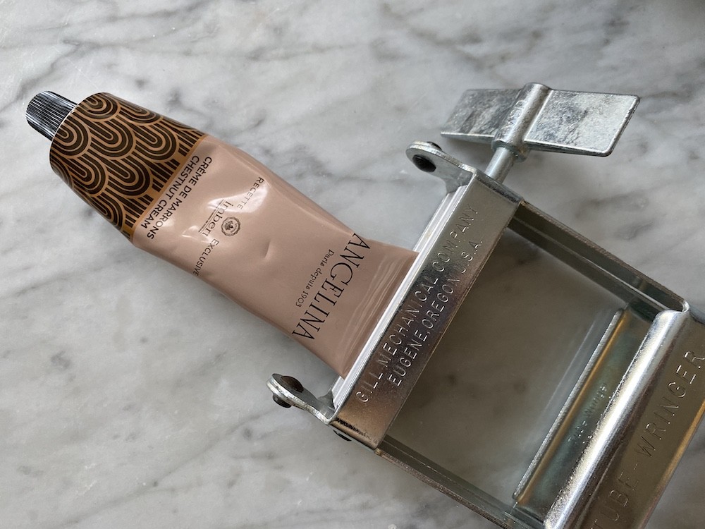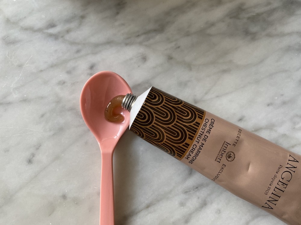 파리로 여행 오시면 꼭 한번씩은 들르신다는 유명한 디저트 가게, 앙젤리나(ANGELINA)의 크렘 드 마롱(밤크림) Crème de marrons 튜브예요.