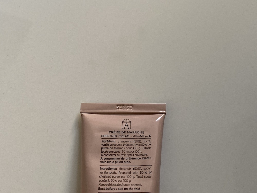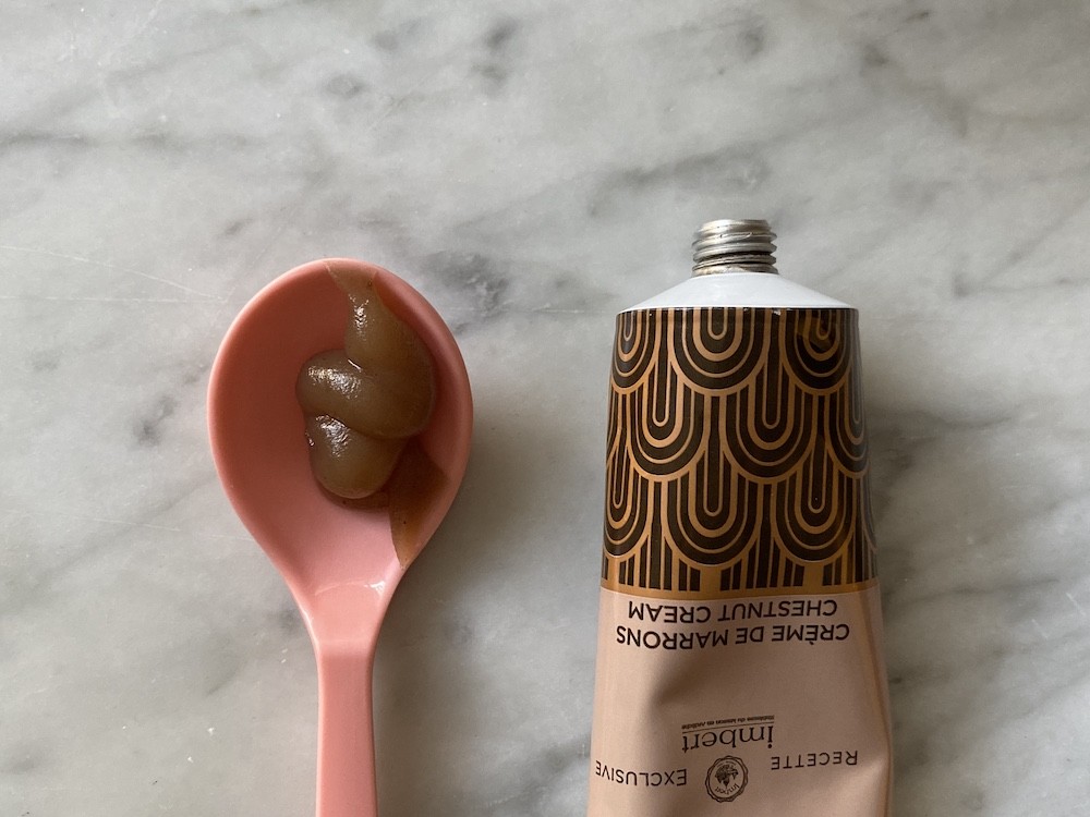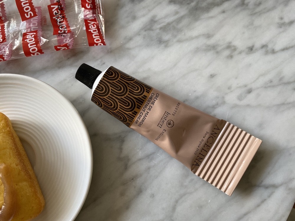 프랑스엔 밤크림 튜브로 유명한 제품들이 몇가지 있는데요. 다른 브랜드 제품들은 화장품 향같은 인위적인 향이 너무 강해서 맛만 보고 다 버렸거든요. 그런데 이 밤크림은 정말 맛있어요. 역시 밤크림이 올라간 케이크인 몽블랑이 맛있는 앙젤리나에서 만든 크림이라 맛있나봐요.