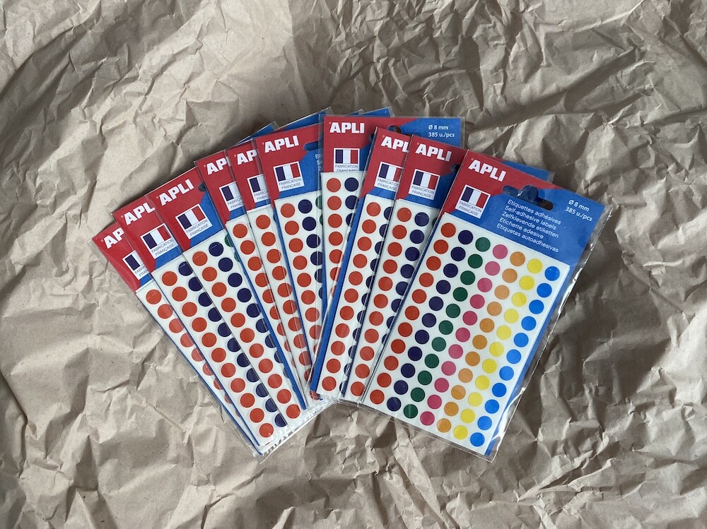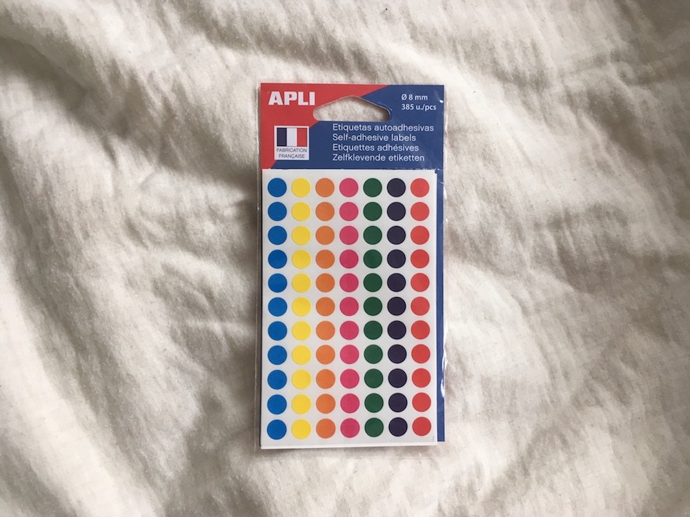 프랑스 APLI사의 동그라미 스티커 멀티 컬러입니다.