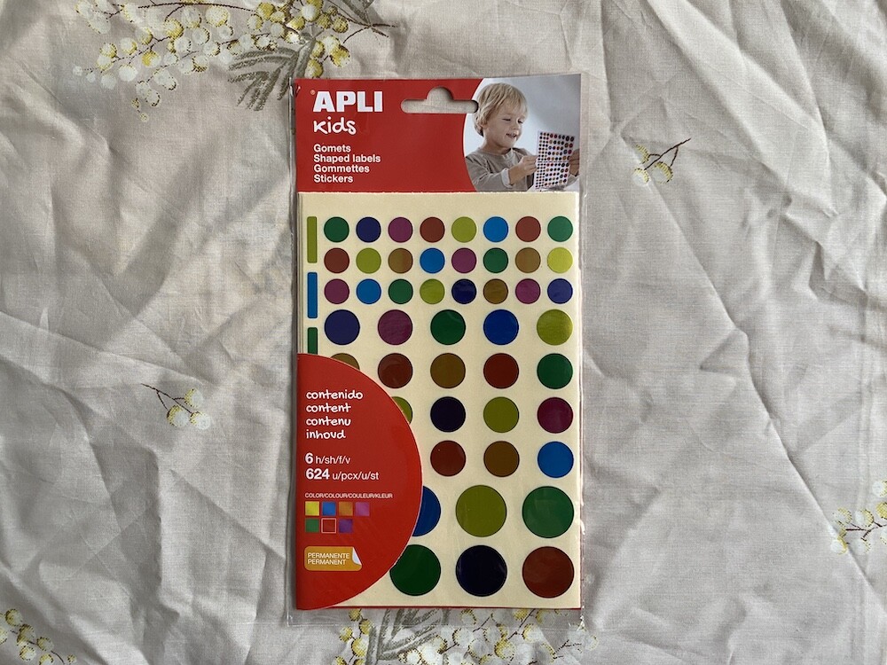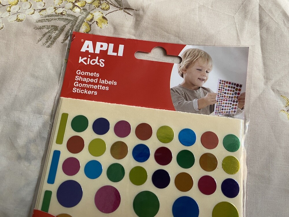 프랑스 APLI사의 동그라미 스티커 반짝이입니다.