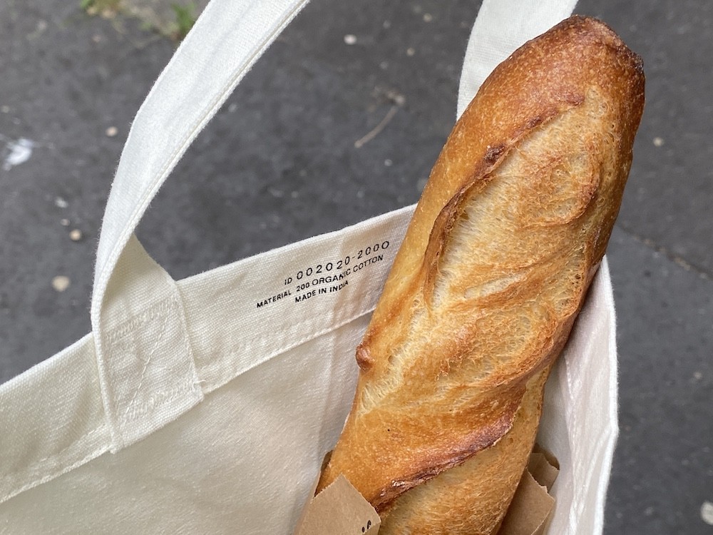 이 에코백의 첫인상은 '군더더기 없는 담백함' 인 것 같아요. 약간 노란빛이 도는 원단도, 그 위에 프린트된 브랜드명도 꾸밈이 없는데 핫해요. 크기가 넉넉해서 이것저것 많이 들어가고요.