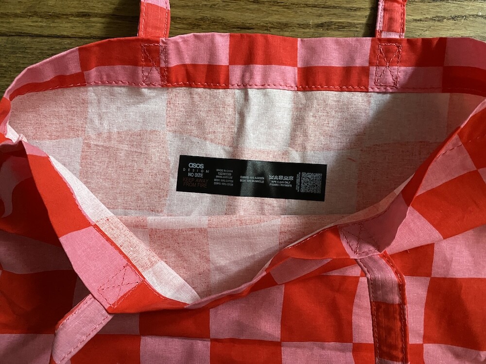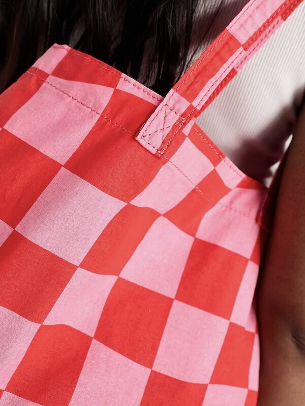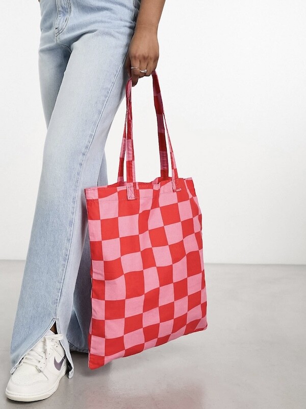 아소스(ASOS) 핑크 다미에 에코백입니다.