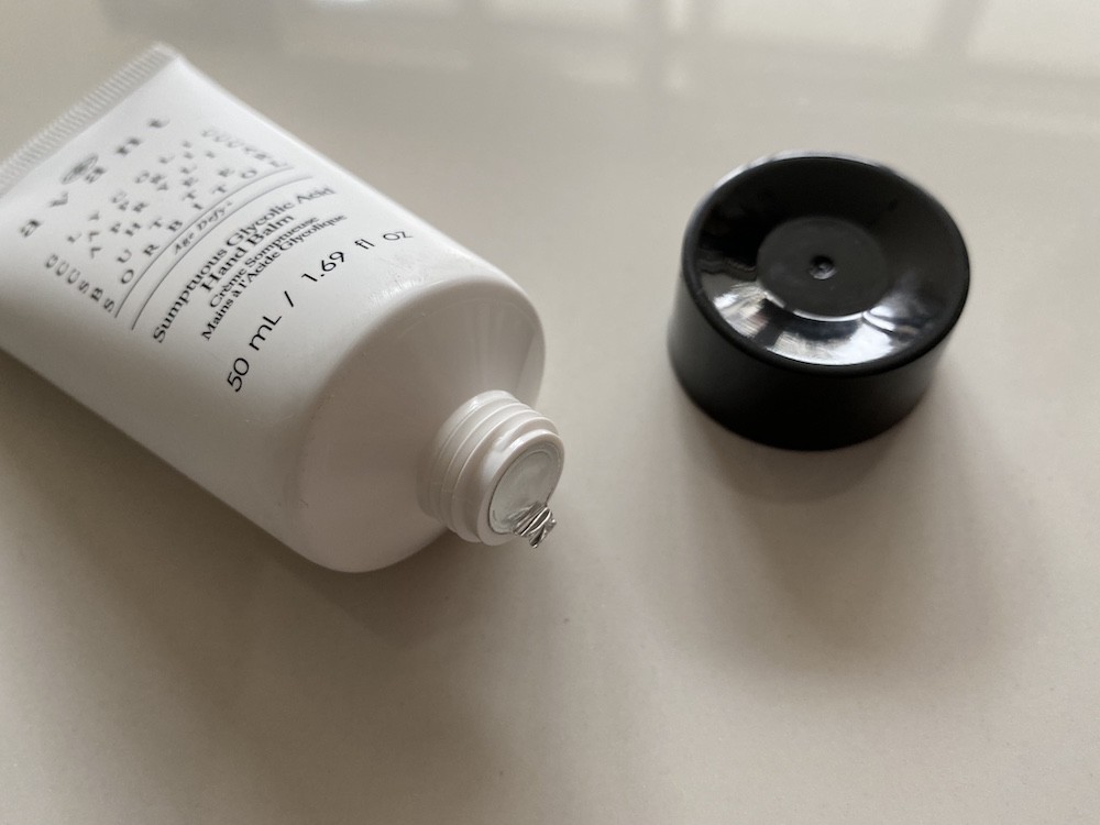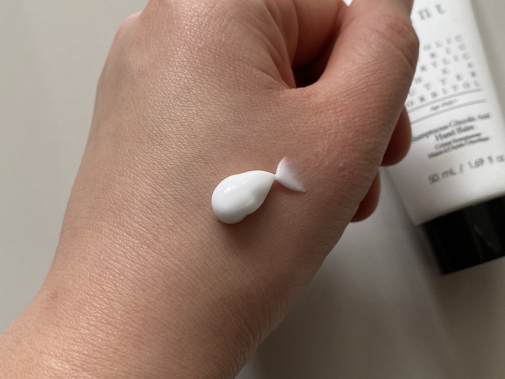 이 핸드 밤은 크림이라기 보다는 로션에 가까운 제형이에요. 손등 위에 부드럽게 잘 펴발라져요. 신기했던 건, 보통 노화 방지 크림은 오래써야 효과가 나타난다고 하는데 이 제품은 바르자마자 눈에 보이는 효과도 있더라고요. 바르고 한 10분정도 후에 주름이 덜 보이고 피부가 뽀얘 보여서 깜짝 놀랐어요. 물론 이런 부분은 개인적이기 때문에 사람마다 다를 수 있습니다.