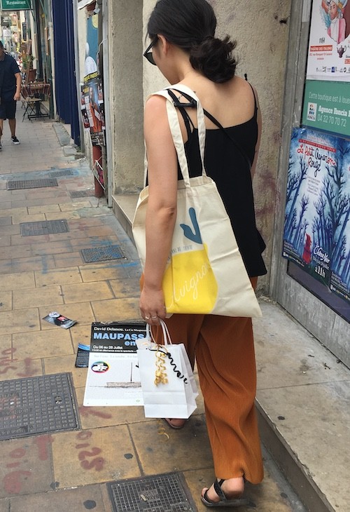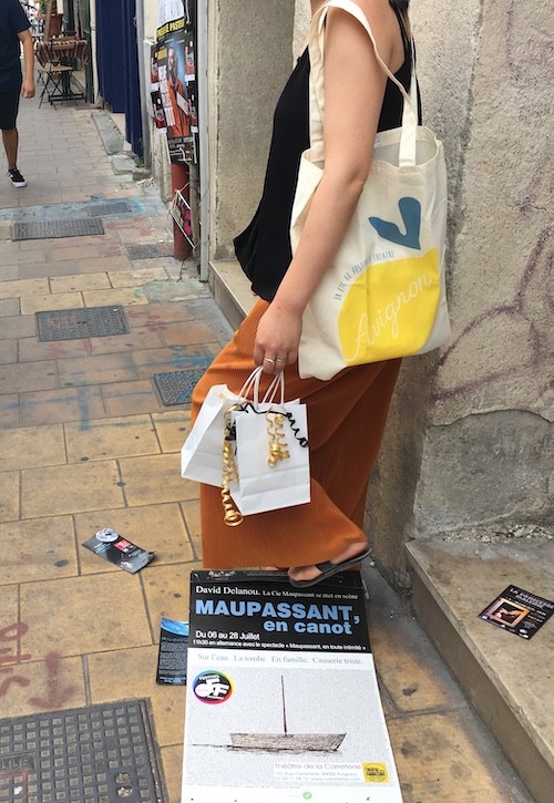 제가 저번주에 프랑스 남부 지방으로 여행을 다녀왔어요. 남부 중에서도 아비뇽 지역이 메인 여행지였는데, 매년 여름에 아비뇽에서는 연극 축제가 열리거든요. 축제를 기념할 만한 에코백을 사고 싶었는데 보이는 것마다 마음에 들지 않아 아쉬운 마음으로 집으로 돌아가던 중에 지역 디자이너들이 만든 한정수량 제품들을 판매하는 부티크를 발견했어요. 거기에서 발견한 너무 귀여운 아비뇽 에코백입니다.